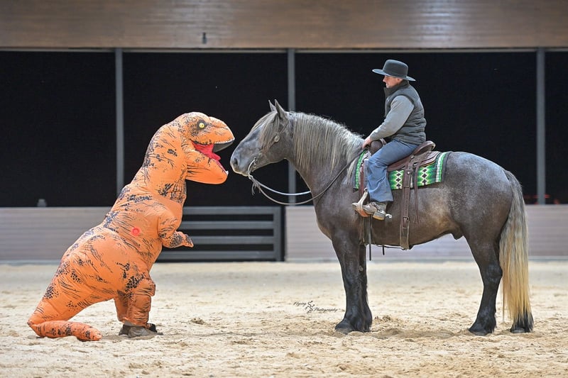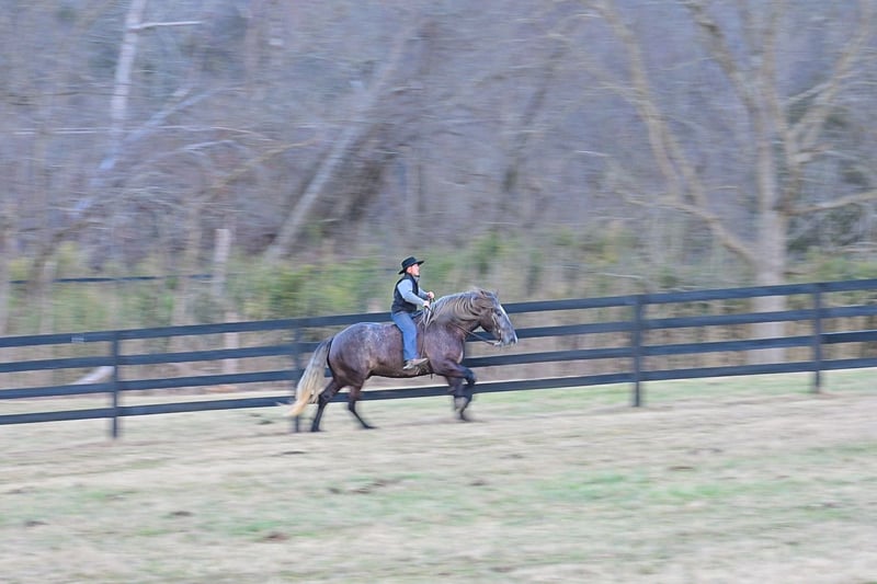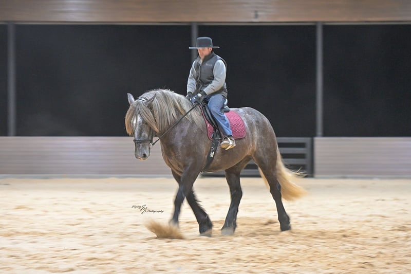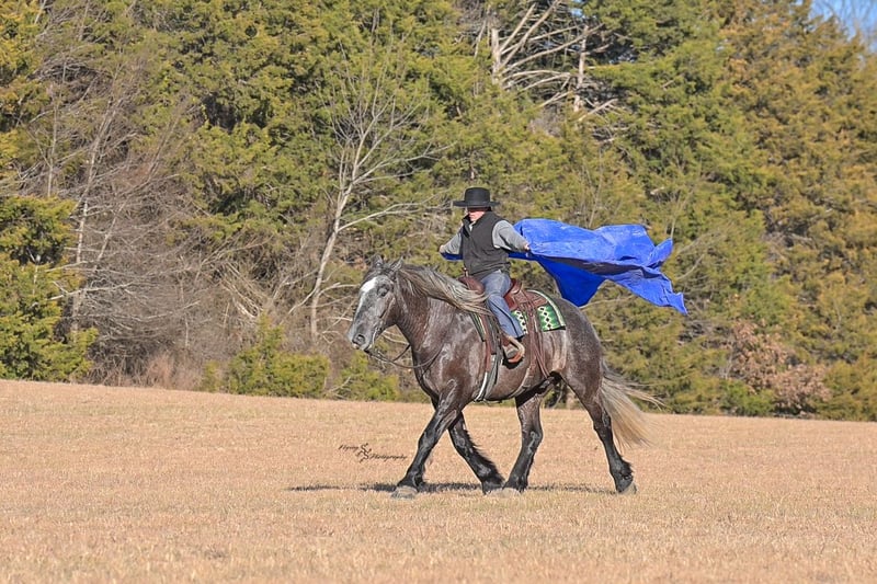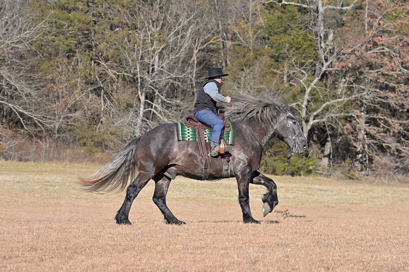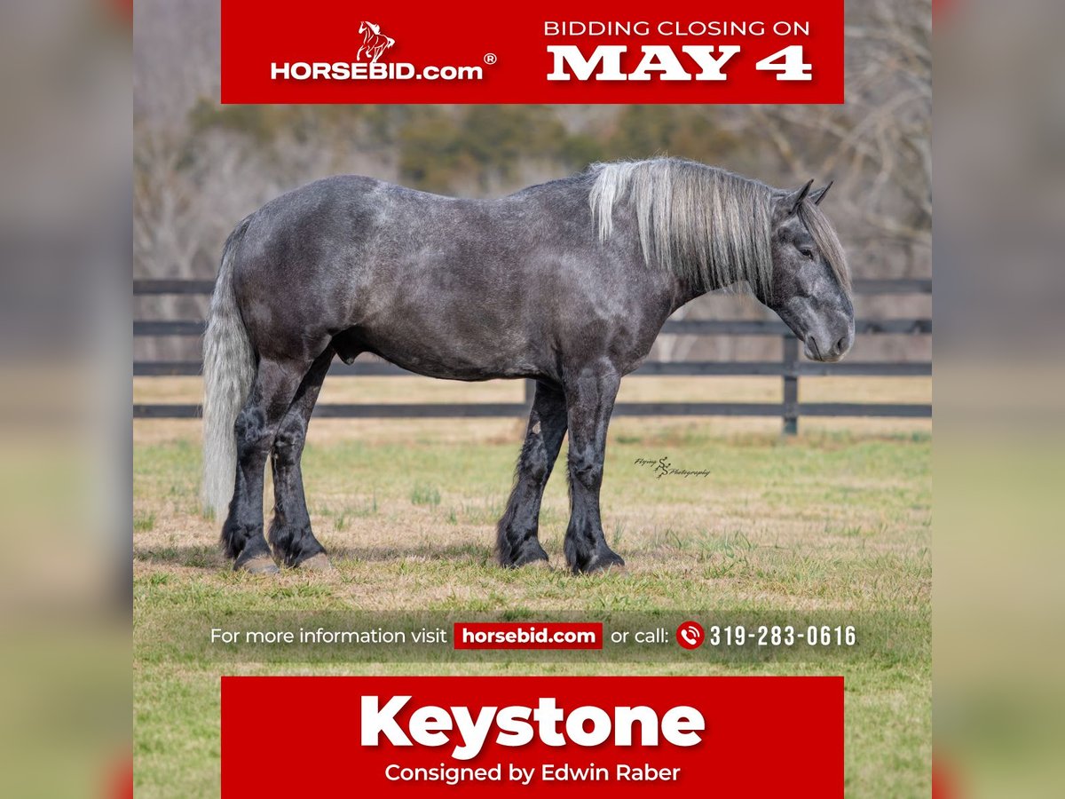 ▪️▫️◾️𝐭𝐡𝐞 𝑴𝒂𝒚 𝐒𝐞𝐥𝐞𝐜𝐭◾️▫️▪️ Happening now thru MONDAY | MAY 4th - Available EXCLUSIVELY on HorseBid's website! For more details and to register visit: www.Horsebid.com CONSIGNOR CONTACT: Edwin Raber 319-283-0616 LOCATION: Fairbank, IA BREED: Percheron x Quarter Horse (Draft Cross) REGISTERED: No COLOR: Gray HEIGHT: 16.2 AGE: 5 GENDER: Gelding Keystone is the definition of a gentle giant, and is the perfect gentleman whether his rider is big or small. He is a 5-year-old draft cross gelding that stands a solid 16.2h, weighing in at 1500 lbs, and wearing a #6 draft shoe. By a Percheron stallion and out of a Quarter Horse mare. He is honest and genuine in his ride, taking care of an inexperienced or a young rider as they stroll down the trails. Keystone is a jack of all trades; he rides Western, English, bareback, bridleless, and even drives! You can expect him to be a seasoned trail or arena mount, even with time off, he picks things up right where you left off. He is a pleasure to be around on the ground, under saddle, or under harness. Keystone will go wherever he is pointed down the trails, where he easily crosses downed timber, walks quietly through the rivers, and handles rugged terrain with ease. He is accustomed to all wildlife as well, whether he comes across a flying pheasant in Iowa, or a speedy road runner in Arkansas; Keystone has seen it all! Whether you are out on the trails or in the arena, he stands patiently at a mounting block or will even stand next to a rock or log to be mounted. He is truly a horse that an entire family can enjoy and is so versatile. He has a personality that everyone loves, as he enjoys all of the attention. He is personable with everyone and doesn't know a stranger. You will notice in his photos and video that he has a true double mane, falling thick and even on both sides of his neck! He is truly one of a kind. Keystone has put up with a lot from me as you will see in the video, always keeping a level head and the utmost patience. He stands quietly with side-by-sides doing donuts around him and even entertains attention from a 7.5ft T-Rex on the ground and under saddle. He handles new things like a seasoned pro, and it's one of our favorite things about him. Keystone picks up his leads correctly on cue, lopes beautiful circles in a field or in the arena. He does everything that is asked of him without hesitation. Even with new riders on his back, he is always aiming to please. For a crossbred gelding, there isn't much that Keystone hasn't done, or hasn't been exposed to. He is extremely well rounded and versatile, making him a great fit for so many riders and families. All of our video was taken while on vacation in Arkansas, a brand-new place to him. Though it is not in the video, we want to emphasize how well he drives and how well he handles riding through the busy streets of our small town. Keystone is traffic safe and handles a busy environment very well. He is not a stranger to trail obstacles; and enjoys all of the horseplay with the tarps, balls, and anything else the kids can think of. Keystone loads and hauls very well, he is a gentleman for the farrier and the veterinarian, bathes well, and stands quietly to be groomed and tacked up. He is used to being around farm equipment and all types of farm animals from small pets to poultry. He is easy to catch and happy whether he is stalled or turned out and gets along well with others in a pasture setting. Radiographs or a pre-purchase exam can be arranged (at buyers' expense). If you have any questions or would like to meet Keystone prior to the auction ending, please CALL Edwin at 319-283-0616.