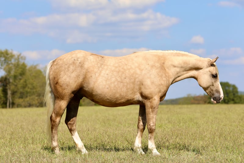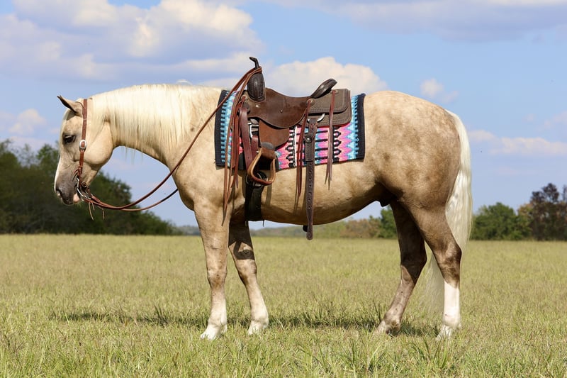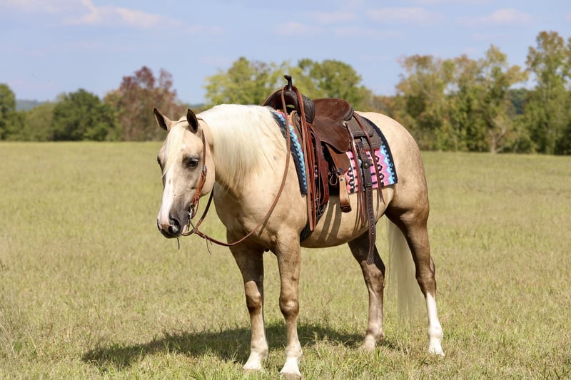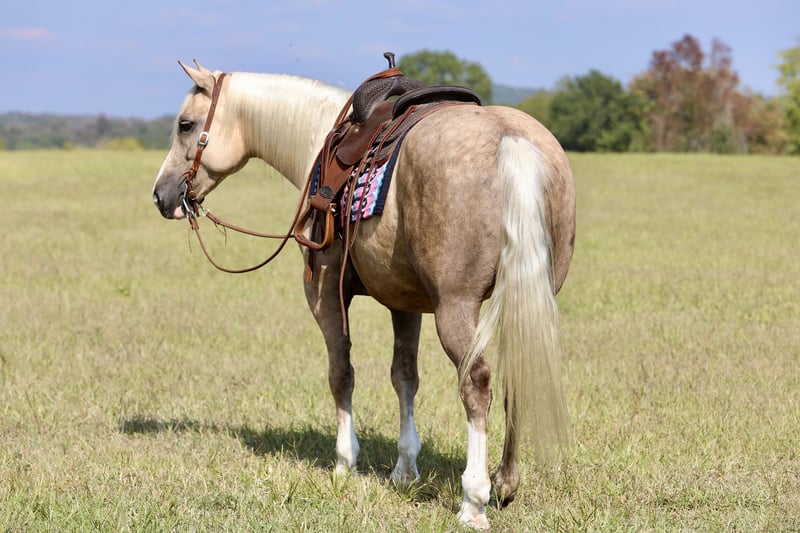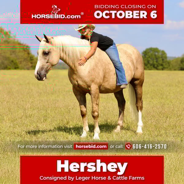 🍂 𝓐𝓾𝓽𝓾𝓶𝓷 𝑨𝑳𝑳 𝑺𝑻𝑨𝑹 𝑳𝑰𝑵𝑬𝑼𝑷 🍂 Happening now thru MONDAY | OCTOBER 6th - Available EXCLUSIVELY on HorseBid's website! For more details and to register visit: www.Horsebid.com CONSIGNOR CONTACT: Leger Horse & Cattle Farms (606)416-2570 LOCATION: Crab Orchard KY BREED: Crossbred REGISTERED: No REGISTERED NAME: Hershey COLOR: Palomino HEIGHT: 15.2 AGE: 5 GENDER: Gelding Meet the one with the looks, the brains, the build and the skills- Hershey! Hershey is a 5 year old crossbred gelding. He stands 15.2 hands tall and he is a beautiful palomino color with a beautiful conformation. He has a super thick build to him and is put together very well. He is 1/4 Belgian and 3/4 Quarter Horse. His dam was crossed between a Quarter Horse and a Belgian and his sire was a Quarter Horse. Hershey is athletic, agile and strong, all while being calm, gentle and reliable. He has obtained all of the best qualities from both the Quarter Horse and the Belgian. We have owned Hershey for the past 2 years and in that time he has been our ranch horse, trail horse, family and friend horse and trick horse! Hershey is super laid back, gentle and friendly. He has the sweetest disposition and is full of personality! He loves your attention and is enjoyable to be around! Hershey has been a trusted mount for our entire family. From rounding up cattle, going on trail rides to showing off his tricks-Hershey’s skills and experience are quite extensive and he is truly an amazing versatile horse! Hershey has spent a great amount of time in the indoor and outdoor arenas. He will one-hand neck rein, lope circles both ways taking the correct leads, has a big stop and works off of leg pressure. His lope is super smooth and enjoyable to ride. We’ve ridden him in a halter and even with a rope around his neck many times! On the trail, Hershey is safe and surefooted. He navigates even the roughest terrain with ease and will go anywhere that you ask him to. Whether it is up and down steep hills, through deep water or mud or over trees and through brush- he will get you where you need to be and do it safely. He will ride in the front or the back, alone or with a group! Hershey is also a trick horse! He will lay down and sit up like a dog and will do this at your command, both while you’re mounted or while you’re on the ground. Hershey will also follow you around like a puppy at the command to “come,” and he loves to do this. With his big personality, he loves doing the tricks and following you around. He is such a sweet soul and truly loves to be in your pocket. He will also side pass to a mounting block or whatever you choose to mount from! He is a super intelligent horse and could be easily taught even more things than these! He does have some buttons but he is super easy to operate! Hershey is also a big help around the farm! He has been used to check fences and cattle very often and is no stranger to a rope and a crazy cow and he has been pasture roped off of. He has been used at the stockyards as well. Anything from sorting, penning and loading trucks- he is familiar with it. He has also been exposed to a lot of wildlife such as deer and turkey. He is also used to the goats, cats and dogs that run in and out of the stall and pasture with him. He is friendly to people, other animals and other horses. Hershey is also great with tarps, whips and guns as you can see in the video. He is completely traffic safe as well. He is clean and quiet in the stall, and gets along well with other horses in the pasture. He is more than easy to catch, he will come to you every time you call! Again, he loves the attention and is full of character! Hershey stands patiently in the cross ties and for the farrier. He loads and hauls wonderfully and loves grooming and a bath! Hershey rides amazing in both English and western tack. He is a super versatile horse. He could do anything! From ranch and cattle work or reining in the western world to jumping or dressage in the English world- his potential is unlimited. We would love for you to schedule a visit to see him for yourself! Be sure to watch our full YouTube video to see all of this and more. We can arrange shipping anywhere in the US. Feel free to call or text with any questions!