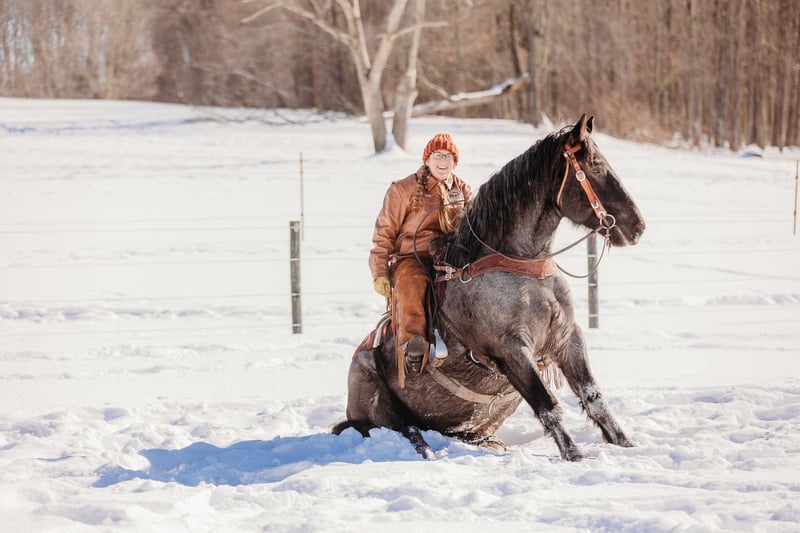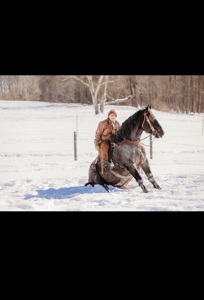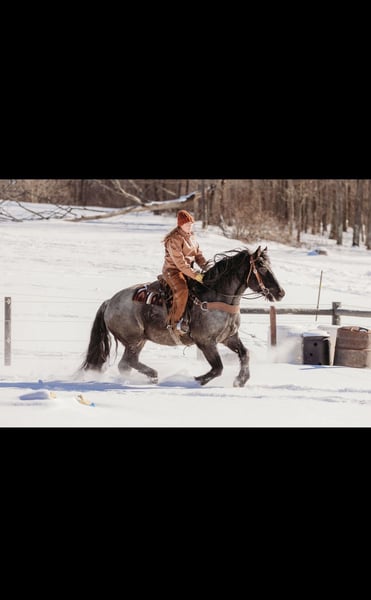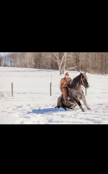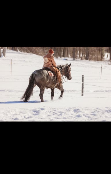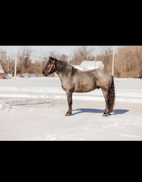 💎 𝐓𝐇𝐄 𝓓𝓲𝓪𝓶𝓸𝓷𝓭 𝐒𝐇𝐎𝐖𝐂𝐀𝐒𝐄 💎 Happening now thru MONDAY | FEBRUARY 23rd - Available EXCLUSIVELY on HorseBid's website! For more details and to register visit: www.Horsebid.com CONSIGNOR CONTACT: Hanson Horse Training 440-858-3074 LOCATION: Andover, OH BREED: Draft Cross REGISTERED: No REGISTERED NAME: Duke COLOR: Blue Roan HEIGHT: 16 AGE: 6 GENDER: Gelding Duke is a 6 year old blue roan draft cross gelding that I have had in my consignment program the last few months. Duke rides phenomenally, has smooth gaits, and is very willing. He has a loving personality that is to die for. He likes people, and doesn’t have a mean bone in his body. He is easy to bathe, flyspray, brush, saddle, bridle, and is just plain nice to be around. He also stands nicely for the farrier and vet, and is up to date on all vet and farrier work. Duke is barefoot, and has wonderful feet and legs. He has no blemishes or scars. Duke has no health issues or any special feed requirements of any kind. He’s an easy keeper, and is fine with any living arrangement (stalled, pasture living, or run in and out situations.) He has been exposed to many things, and is also started in harness. You can tie him anywhere and he will cause no trouble. Duke gets along with other horses well. He loads in the trailer easily, ties in the trailer, backs out or will turn around and walk out nicely. He has been hauled in slant load trailers and in stock trailers. I have never had him refuse to load, nor had any funny business in the trailer. I haul Duke to the arena and ride a few Duke a few days per week and he always acts like a gentleman. I trust people of all skill levels to lead and handle Duke. In a controlled environment with supervision I would be comfortable with beginners riding him also, he would be absolutely phenomenal for a lesson program; western or English. Duke has had been hopped over a few small jumps also! Sidepassing to the mounting block is another one of Duke’s handy skills! Another fun trick that he knows is lying down. He will lie down for you to mount and dismount, and will also sit up on command! He is truly a special horse that would be very hard to duplicate. If you’re looking for an arena horse, trail horse lesson horse for people to learn on, or just an amazing and beautiful companion, Duke offers that. Dukes current owner expected him to be her forever horse. Life has thrown her a curveball, and she is now having some serious health issues. She is battling a bad cancer fight, and regrettably has to offer Duke for sale to his new lucky owner. It breaks her heart to have to sell him but she has no choice. If her health wouldn’t be failing her, this horse would never be offered for sale. Don’t miss your opportunity to own a once in a lifetime horse. I come across very few special horses and Duke certainly makes it on that list. Please call or text 440-858-3074 for any info or to come out and try Duke in person. Whoever buys Duke will not be disappointed.
