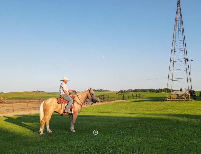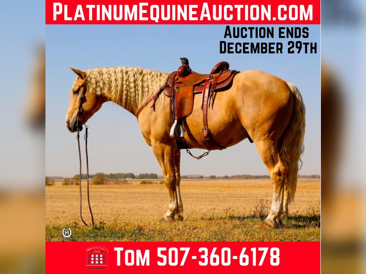 ONLINE AUCTION Place your bids at www.PlatinumEquineAuction.com Starting Bid $3500 Auction ends December 29th, 2024 Need a new saddle? Check out White Rock Saddles on our website or Facebook! Bar M’S Dallas is a gorgeous 2020 Palomino draft/ quarter horse cross gelding. He stands 16.1 hands tall. He is broke to ride the very best.He will take either lead and lope out of his tracks. He will stop and turn around like a 14.1 quarter horse. He had been ridden a lot in the arena and has hundreds of miles of trails under him. He has been used to direct traffic at large events. He will side pass to the mounting block. Dallas will lay down on command as well as sit up like a dog. He loads and hauls like a seasoned horse. Dallas will be the same horse every time he is saddled whether that’s every day or once a month. He stands for the farrier. Dallas loves his bath time as well. He has a huge heart and will work all day for whatever you ask of him. Dallas is sure to stand out with that beautiful Palomino color!! This big pretty gelding is suitable for just about any level of rider, making him a perfect fit for the entire family. Dallas is current on all his vaccinations. Please call Bar M Horse Ranch Tom with any questions at 507-360-6178 Located in Windom, MN. ONLINE AUCTION Place your bids at www.PlatinumEquineAuction.com Starting Bid $3500 Auction ends December 29th, 2024 Need a new saddle? Check out White Rock Saddles on our website or Facebook!
