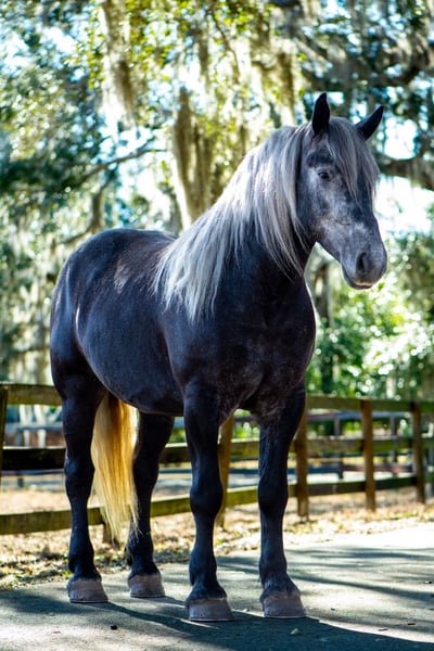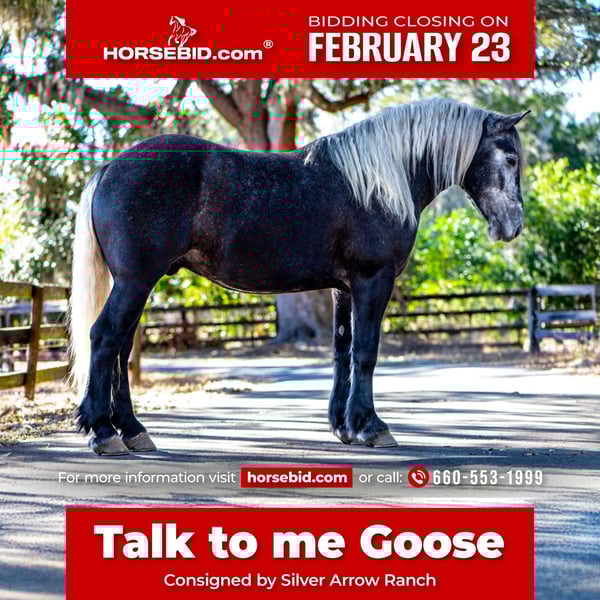 💎 𝐓𝐇𝐄 𝓓𝓲𝓪𝓶𝓸𝓷𝓭 𝐒𝐇𝐎𝐖𝐂𝐀𝐒𝐄 💎 Happening now thru MONDAY | FEBRUARY 23rd - Available EXCLUSIVELY on HorseBid's website! For more details and to register visit: www.Horsebid.com CONSIGNOR CONTACT: Silver Arrow Ranch 660-553-1999 LOCATION: Ocala, FL BREED: Draft cross REGISTERED: No REGISTERED NAME: Talk to me Goose COLOR: Grey HEIGHT: 16.2 AGE: 6 GENDER: Gelding I don’t think just words can describe Goose. He is truly one of a kind. Goose is sweet, gorgeous, puppy dog like, confident, and a love bug. We have done a bit of everything together! Goose has gone along to the beach (where everybody wanted photos with him), was a shining star at the obstacle course, has played over some jumps, gone on many trail rides, been ridden in all disciplines, and has always been a “yes sir/ma’am” to anything else we ask of him. On the ground Goose is a gentle giant. He is always waiting patiently at the gate in the mornings to have his halter put on. He walks patiently to the barn and does not rush into his stall to eat breakfast. When it comes time to have his “spa” time he is patient and loving of all attention. Goose will ground tie, cross tie, and single tie for grooming and saddling. Goose is an absolute pleasure to ride in and out of the arena. In the arena he is patient, calm, and willing. He has a lovely walk trot and the SMOOTHEST canter. He has the perfect amount of woah and go for all levels of riders. When riding if the rider gets unsure just say “woah” it is his favorite word! Goose has been off property multiple times and loves it! He will practically load himself! Just like in Top Gun, “Talk to me Goose” is used when Maverick needs guidance and reassurance. If your a rider that needs reassurance, then Goose is for you! X-rays and PPE on file