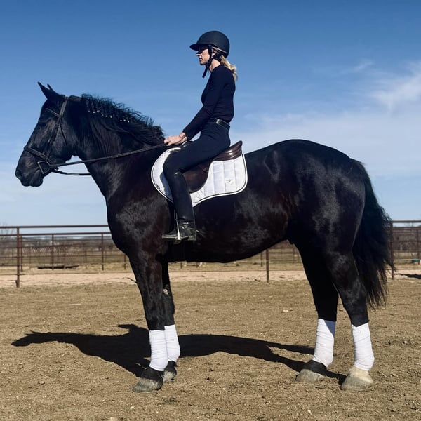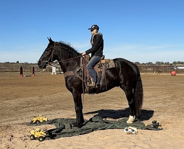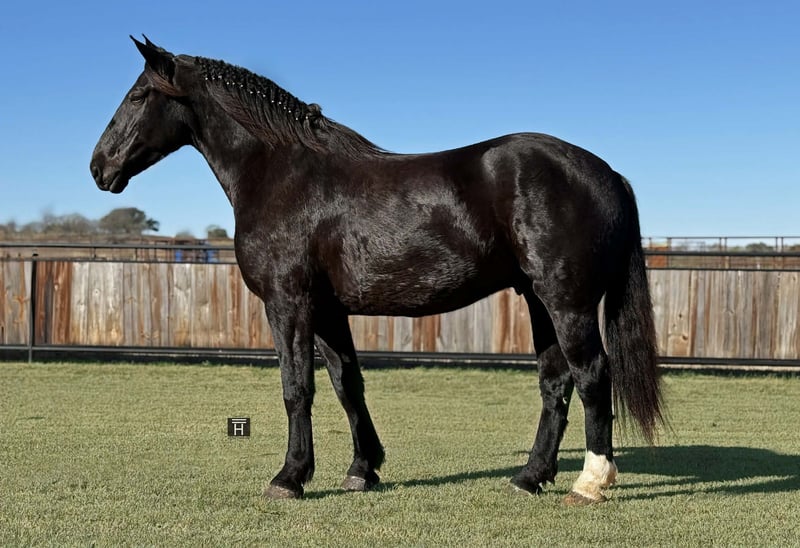 ONLINE-AUKTION Gebote unter www.PlatinumEquineAuction.com Startgebot 3.500 USD Auktion endet am 28. Dezember 2025 Benötigen Sie ein neues Sattel? Schauen Sie auf unserer Website oder Facebook-Seite bei White Rock Saddles vorbei. Coal ist ein beeindruckender 5-jähriger Percheron-Geländewagen-Wallach mit einer Schulterhöhe von 17 Händen. Wo soll man anfangen… Coal ist ein äußerst talentierter, athletischer, williger, freundlicher und sanfter Wallach, der wirklich alles kann – und das stets mit einem „Ja, Ma’am“-Einstellung. Er springt, zieht sowohl einzeln als auch paarweise, unternimmt Geländeritte und ist für alle Reiter geeignet. Im Viereck ist Coal einer der weichsten Bewegungen, die ich je geritten habe. Er zeigt schöne Übergänge und kann mit einem einzigen Kuss antraben. Er ist bereits über Hindernisse gearbeitet und liebt es absolut! Er ist einer der natürlichsten Springpferde, die ich je ausgebildet habe. Im Gelände ist Coal fröhlich und unerschrocken und geht überall hin, wo man ihn hinführt. Hoch, runter, über oder durch – er macht es ohne Zögern. An der Spitze des Feldes? Ja, Ma’am. Hinterher? Ja, Ma’am. Wir haben noch nie eine negative Einstellung oder ein „Nein“ von Coal erlebt. Niemals! Am Boden zeigt Coal vorbildliche Manieren. Er ist freundlich, leicht zu fangen, liebt Aufmerksamkeit und genießt es, gestreichelt zu werden. Coal ist sowohl zum Ziehen einzeln als auch im Doppel ausgebildet. Er ist das Leitpferd zusammen mit seinem Halbbruder Smoke, der ebenfalls zum Verkauf steht, falls Sie sie als Team haben möchten. Coal ist gesund, gerade und hat saubere Beine. Er ist auf dem neuesten Stand, beim Hufschmied zuverlässig, weidet mit anderen Pferden zusammen und bleibt auch alleine artig im Stall. Bei Fragen rufen Sie bitte Chanel von Holland Horse Company unter 559-978-6320 an oder schreiben Sie eine Nachricht. Standort: Jacksboro, TX.