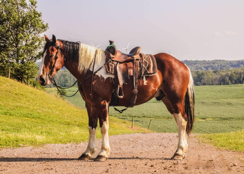 ONLINE AUCTION Place your bids at www.PlatinumEquineAuction.com Starting Bid $3500 Auction ends August 11th, 2024 Need a new saddle? Check out White Rock Saddles on our website or Facebook! Big Ben is the true definition of a gentle giant, standing at 17hh and just 4 years old! For his size, he is sure-footed walking through the woods or crossing any ditches. Big Ben will w/t/c on the correct leads in the arena. We have put him through our obstacle course, and he easily passed everything! Big Ben is traffic-safe and good with tarps, stock whips, and bridges. He will side-pass and back up with ease! We have taken him to the kid’s camp, where we teach beginners how to ride, and he does well with all ages. Big Ben will trail ride alone or in a group and go anywhere you point him. If you don’t want to ride, Big Ben also drives. He will drive down the road with cars passing by and not even lift his head. He is easy to hitch and stands quietly. Big Ben stands good for the vet, clipping, and bathes. He sells 100%sound with no vices. We welcome you to come out to the farm and try him out. Contact Dayton Wolcott 585-734-0169 for more information on Big Ben. Located in Warsaw, NY. ONLINE AUCTION Place your bids at www.PlatinumEquineAuction.com Starting Bid $3500 Auction ends August 11th, 2024 Need a new saddle? Check out White Rock Saddles on our website or Facebook!