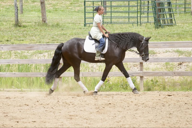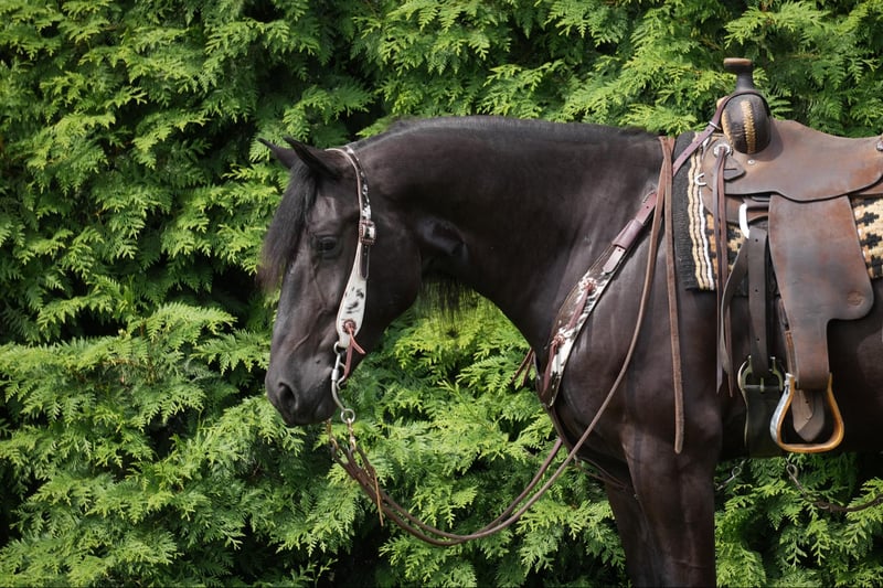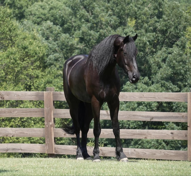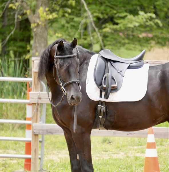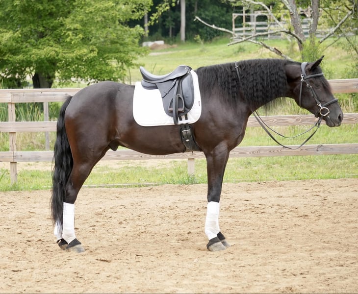 ONLINE AUCTION Place your bids at www.PlatinumEquineAuction.com Starting Bid $3500 Auction ends July 28th, 2024 Need a new saddle? Check out White Rock Saddles on our website or Facebook! Perfection, that is what you will think when you gaze upon this beauty. Jackson is a 5 year old, Strong 16.2 hand gorgeous Reg. Friesian cross gelding. He is a solid citizen that catches the eye of all who see him. He is a true all around horse for anyone to enjoy no matter if they want a fantastic riding partner, or they need a sensible equine partner, or they want to hitch him up to that epic carriage for a quiet relaxing drive down the road. He is a beautiful deep black coat with long flowing hair for days. He has a great personality and loves all the snuggles you give him. He is a very solid and trail horse. He has a great walk, a very nice trot and canter. He has been on countless trail rides in all different types of terrain. He crosses water of all kinds and will walk over bridges. Jackson is definitely a horse that you will wear your tires off looking for, as he is a once in a lifetime type of horse. He is tarp safe and doesn’t mind the ball at all, loves obstacles, and has been on tons of trails and he does great. He really loves his down time with his person and loves to play with the big ball together. Jackson is a horse that we know you will fall in love with, he does not need to be in any type of program or ridden every day to be the same horse for you when you get him out. He can be kept in a stall and also does great on pasture and is super easy to catch. He stands well in the cross ties and really loves attention. He is wearing shoes all around and does wonderful for the farrier. If you feel this is the horse for you, please feel free to contact us or come see him in person! Contact Marcus Weaver 330-365-0233 Located in Fresno, OH. ONLINE AUCTION Place your bids at www.PlatinumEquineAuction.com Starting Bid $3500 Auction ends July 28th, 2024 Need a new saddle? Check out White Rock Saddles on our website or Facebook!