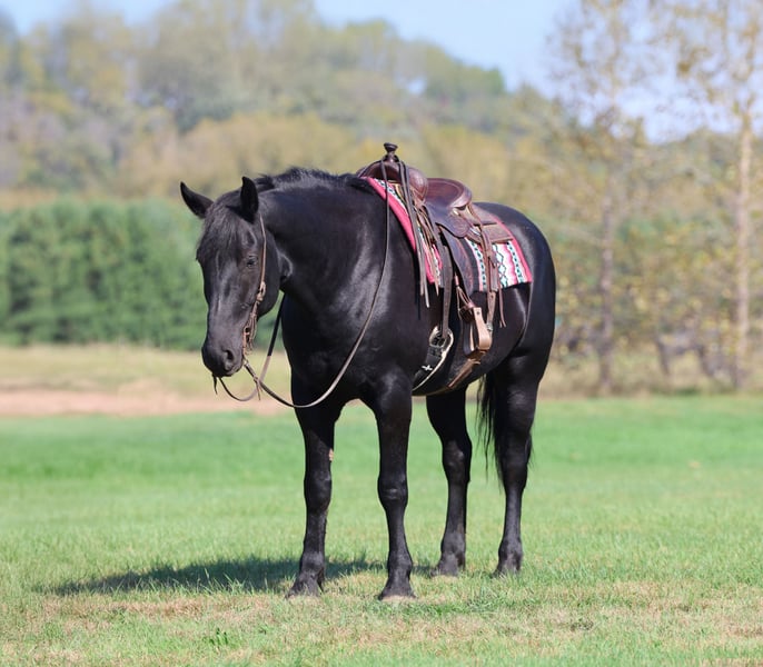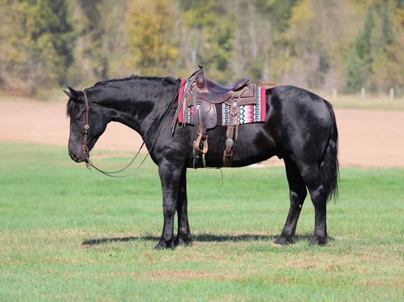 ⚜️𝐓𝐇𝐄 𝐅𝐀𝐋𝐋 𝐇𝐄𝐑𝐈𝐓𝐀𝐆𝐄 𝐂𝐋𝐀𝐒𝐒𝐈𝐂⚜️ Happening now thru MONDAY | NOVEMBER 3rd - Available EXCLUSIVELY on HorseBid's website! For more details and to register visit: www.Horsebid.com CONSIGNOR CONTACT: Cole Stevens 651-387-8781 LOCATION: Riverfalls, WI BREED: Crossbred REGISTERED: No COLOR: Black HEIGHT: 16.3 AGE: 6 GENDER: Gelding Everyone always calls looking for a big pretty crossbred well we finally have one and he checks all of the boxes! Toby is a 6 year old crossbred gelding that is jet black, stands 16.3/17 hands and has been used for anything and everything that we can put one through. Toby has had every job on the place, we have used him to gather and doctor yearlings, taken him on trail rides and there isn’t anything that bothers him. He is point and shoot! Toby rides in and out of the arena, and he will lope around like a quarter horse. He is very good leaded and one hand broke, he even rides bridleless. He has also been ridden English, so if you’re wanting to ride English or western it makes no difference to him, he is just along for the ride and looking to please. Before coming to us he was used to the rodeos as a flag horse and also used to clear cattle out of the arena, he has seen the lights and the music in front of the big crowds! He is gentle and stays that way he has a huge personality and always wants to be your friend. There really isn’t a job to big or to small for this gelding. Don’t miss out on this super nice gelding, he will stand out no matter where he goes. He is ready to go to his next home where someone can use and enjoy him. Toby has great feet and is as straight and clean legged. If you have any question feel free to call me at 651-387-8781. He is offered exclusively on Horsebid.com!