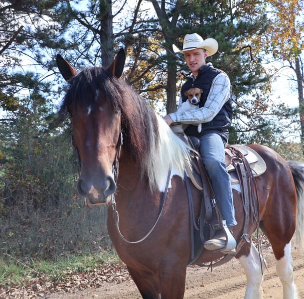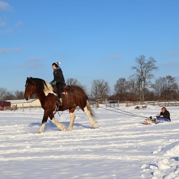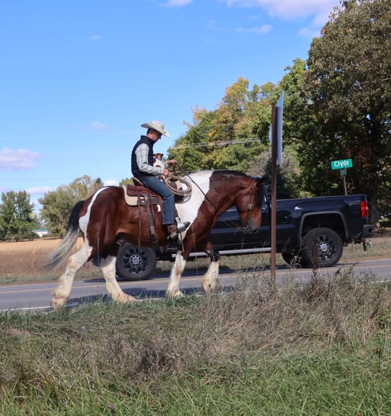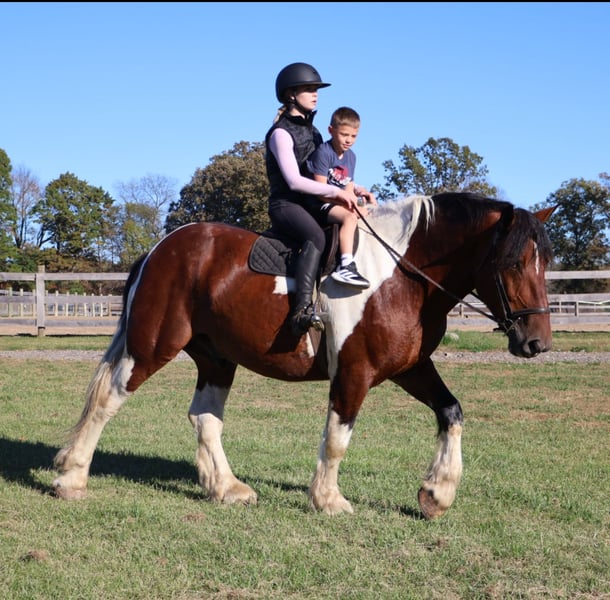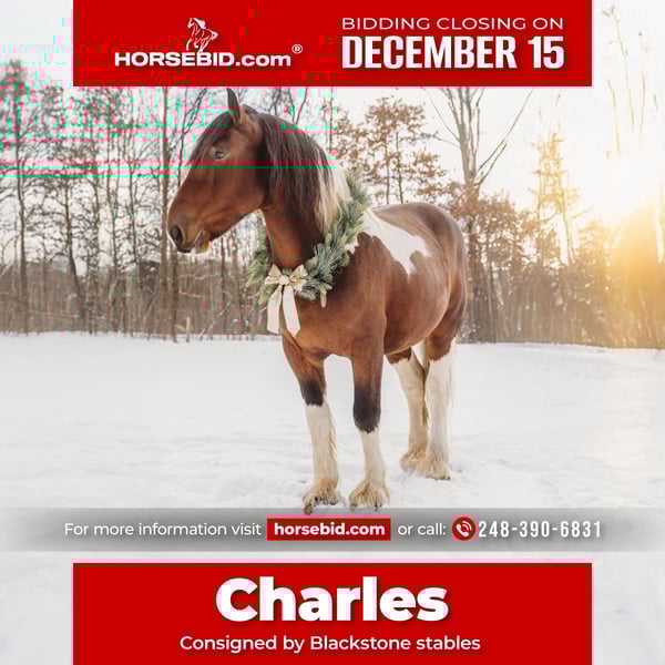 🎄𝐓𝐇𝐄 𝑯𝒐𝒍𝒊𝒅𝒂𝒚 𝐂𝐋𝐀𝐒𝐒𝐈𝐂🎄 Happening now thru MONDAY | DECEMBER 15th - Available EXCLUSIVELY on HorseBid's website! For more details and to register visit: www.Horsebid.com CONSIGNOR CONTACT: Blackstone Stables 248-390-6831 LOCATION: Howell MI BREED: Spotted Draft REGISTERED: No REGISTERED NAME: Charles COLOR: Tri Color Paint HEIGHT: 17 AGE: 6 GENDER: Gelding Introducing Blackstones Charles. This 6 year old 17hh spotted draft gelding has it all. From his captivating personality to his stunning conformation and painted color. Charles lacks nothing. Charles is the type of horse who wants to be your best friend. He plays well with all the others outside and will catch you when you walk to the pasture. Charles is extremely well broke. He walk, trots, canters and stops on a dime. His transitions are flawless both upward and down. Charles steers off seat and leg so well you don’t even need a bridle. He will gladly take a bit, snaffle or shank he’s not fussy or just pull the bridle right off and he steers with all leg ques. He builds you up every ride and makes you want to get on. Charles has loads of experience out on the trails from the mountains of MO to the open fields of MI he’s seen it. Water, deep woods, roads, wildlife no problem. Charles has been ridden in groups of 40 horses. He will take any place you ask in the group and is not one to get worked up. He’s also been out alone. He’s been driven single and double. He has worked in busy city's, in traffic and crowds of people. He stands to harness. He stands at stop signs and he will stand for passengers to get on and off the carriage. He has a great amount of training in the arena as well. He will easily steep into the lope, and can canter small circles on both leads. Charles is very balanced and light on his feet. He’s completed our desensitizing program. Pool noodles, tarps and bridges are all no problem for him. He is a very brave horse. Charles is the horse to teach you the ropes, the one you can depend on and he’s loaded with personality. He is sure to win you over with one glance into his big soft eyes! Charles lives in Howell, MI. Please call or text Ellesse Schwartz at 248-390-6831