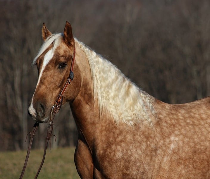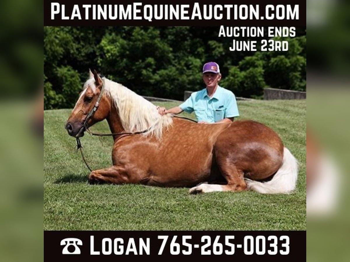 ONLINE AUCTION Place your bids at www.PlatinumEquineAuction.com Starting Bid $3500 Auction ends June 23rd, 2024 Need a new saddle? Check out White Rock Saddles on our website or Facebook! Dream horses do exist and Aspen is living proof of that! Talk about a horse that gets ALL of the looks where ever he goes!!! Aspen is a super stout built Golden Dappled Palomino Draftcross gelding standing around 15.2hh and he is 6 years old! In the fall/winter Aspen has more dapples than your eyes can count, as he is a high contrast dappled palomino. In the summer he is a dark golden palomino with chocolate highlights… he is always BEAUTIFUL!!! Aspen has been with us for almost 2 years now and we used him as my personal horse. He went through the natural horsemanship training and learned some tricks a couple years ago, where he would bow and lay down. Aspen has been used to around cattle and has caught wild ones, (roped/tied down), he has been used in the branding pen and used to doctor as well. He has been ridden down the highways, we have had him in town and he is very traffic safe. Aspen is great on trails and he will cross creeks, ditches, logs and navigate rough rocky areas. He has a smooth jog, a VERY VERY nice easy to set lope, a good stop, spins a circle both ways and backs with ease! He has been exposed to all kinds of wildlife such as deer or turkey or other animals like cows or dogs and will go anywhere that he is asked too. He has been rode many miles in the mountains of Eastern Kentucky and encountered every obstacle possible on the trail. He will go up or down even the steepest slopes, across deep creeks, over downed trees, and over all types of rough terrain while still being sure footed. Aspen is not cinchy, cold backed, does not crib or weave. Located in Level Green, KY. Feel free to call Moore Trained Horses Logan 765-265-0033 with any questions. ONLINE AUCTION Place your bids at www.PlatinumEquineAuction.com Starting Bid $3500 Auction ends June 23rd, 2024 Need a new saddle? Check out White Rock Saddles on our website or Facebook!