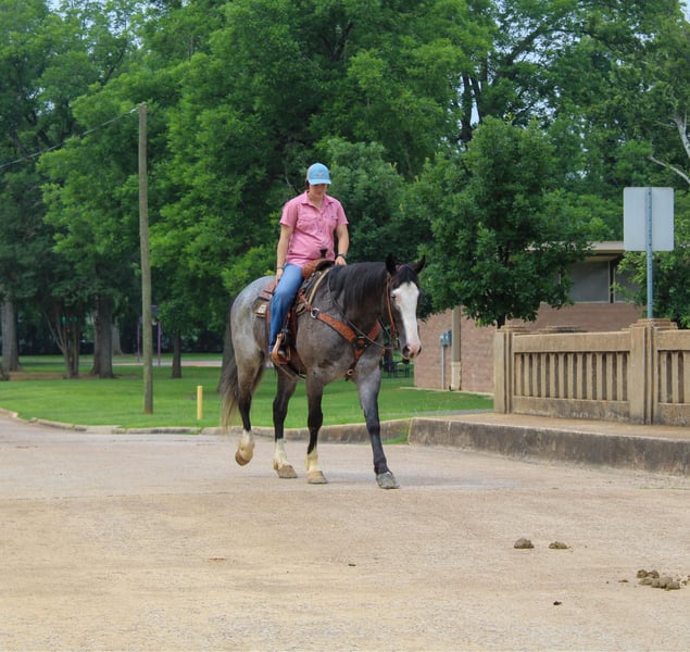 ONLINE AUCTION Place your bids at www.PlatinumEquineAuction.com Starting Bid $3500 Auction ends June 23rd, 2024 Need a new saddle? Check out White Rock Saddles on our website or Facebook! Indigo is a 7 year old BLUE ROAN draftcross gelding, He stands 16.1 hands tall and is a gentle giant! Indigo has been used for a little bit of everything! He has been trail rode all over, been hauled to state parks, he has been hunted off of in the mountains, he has also been packed off of. Indigo does great in any type of terrain, He crosses the creeks, bridges , and logs with no hesitation. Indigo has also spent countless hours on the ranch and in the sale barn doing all aspects of ranch work. He has been used to rope and doctor cattle outside, he has also been used to gather and sort cattle. Indigo has been used at the sale barn for pushing and sorting cattle as well! Indigo is super gentle and quiet, he has a sweet puppy dog personality and wants to be everyones friend! If your looking for a fancy crossbred that you can do anything on be sure to check Indigo out! He is located in Rusk TX, Nationwide shipping is available! Call or text TR Livestock Rachel 605-370-4644 for more info. ONLINE AUCTION Place your bids at www.PlatinumEquineAuction.com Starting Bid $3500 Auction ends June 23rd, 2024 Need a new saddle? Check out White Rock Saddles on our website or Facebook!