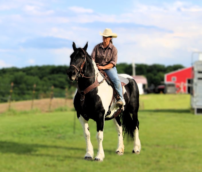 NLINE AUCTION Place your bids at www.PlatinumEquineAuction.com Starting Bid $3500 Auction ends June 15th, 2025 Need a new saddle? Check out White Rock Saddles on our website or Facebook! CLANCY The ultimate family horse! ❤️ Meet Clancy, a 13-year-old, 16.3h, Spotted Draft mare who is as solid as they come—big, stout, beautiful, and a total sweetheart. She’s 100% sound and sane, and safe enough for the entire family—literally! She’s gentle and steady enough to carry multiple riders at once, and she genuinely loves attention. ✨ Big, stout, and gorgeous with a kind eye ✨ More woah than go – calm, quiet, and safe ✨ Rides AND drives ✨ Has pushed cattle ✨ Not spooky – traffic, tarps, dogs? No problem! ✨ Rides bareback or saddled ✨ Hooks up to a cart for a peaceful drive ✨ Easy to catch, loves people, stands tied, great for baths ✨ No maintenance – easy keeper ✨ Great on trails, around the ranch, or just strolling the pasture Whether you’re looking for a dependable partner to teach the kids, a steady ride for guests, or just a kind soul to enjoy, Clancy is the one you’ve been waiting for. Located in Princeton, Missouri Call or text Heather Stark at 660-953-1476 for more info or videos! Need a new saddle? Check out White Rock Saddles on our website or Facebook! Safe, stunning, and sweet—Clancy is the kind everyone wants but few ever find ONLINE AUCTION Place your bids at www.PlatinumEquineAuction.com Starting Bid $3500 Auction ends June 15th, 2025 Need a new saddle? Check out White Rock Saddles on our website or Facebook!