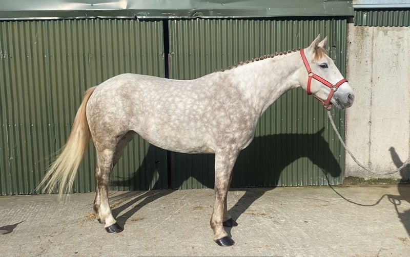 Roisinview Lady 4yo RID mare 15,3hh (160cm) 🍀 Coilldarach Scirocco x Hillviewfarm Superstar Beautiful, quality young mare with a fantastic temperament. Professionally educated and doing the basics nicely. Moves through her paces easily, schooled over poles and x country, hacks out alone and in company. Good in traffic. Has hunted with the Sligo Harriers and jumped walls, logs, ditches and hedges. Lovely sensible lady that tries her best and is very positive. Will make a fabulous hunter and allrounder. Easy to ride and manage in all ways. Has been ridden successfully by a few different riders here. Price €6,000 Located in Sligo, Ireland. Regular professional transport available if required. No known injuries, issues or vices. Open to vetting / on site trials. For further information or videos please contact Edward on 00353871412129. All enquiries welcome.