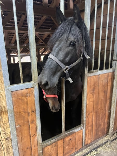 Lovely 5-year-old mare, a cross between a Noriker and a Slovenian cold blood (SHL), offered for sale due to herd reduction. She is a very kind and well-behaved horse, reliable both out on the trails and in the arena. She has a calm and cooperative temperament, making her suitable for less experienced riders as well. Easy to handle, willing to work and pleasant to ride. Price 3200€ phone: + 386 69 895 224