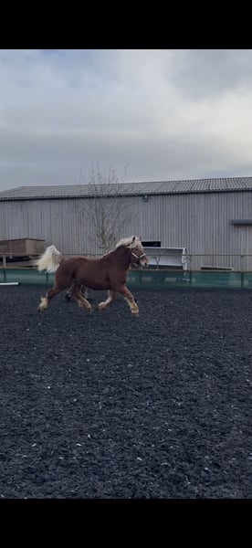 Jument comtoise de 5 ans Très proche de l’homme Montée et attelée Expérience en travail agricole ainsi qu’en débardage Vit en troupeau