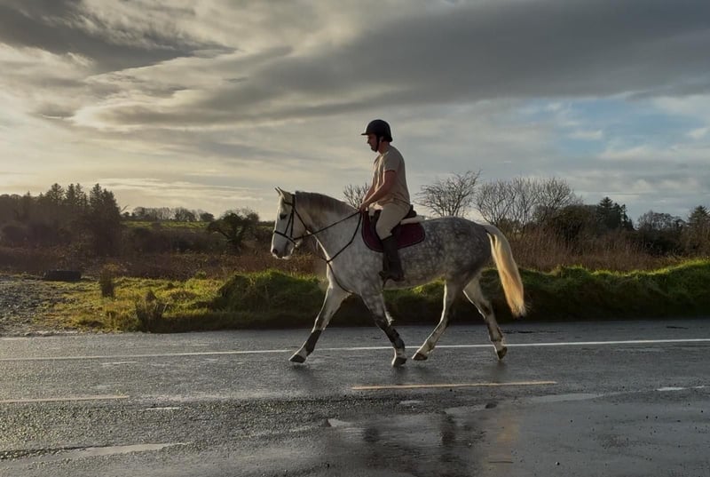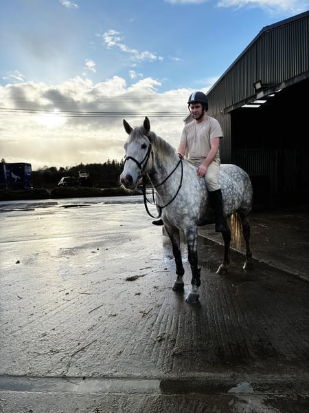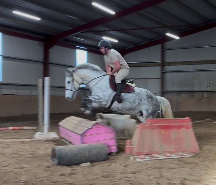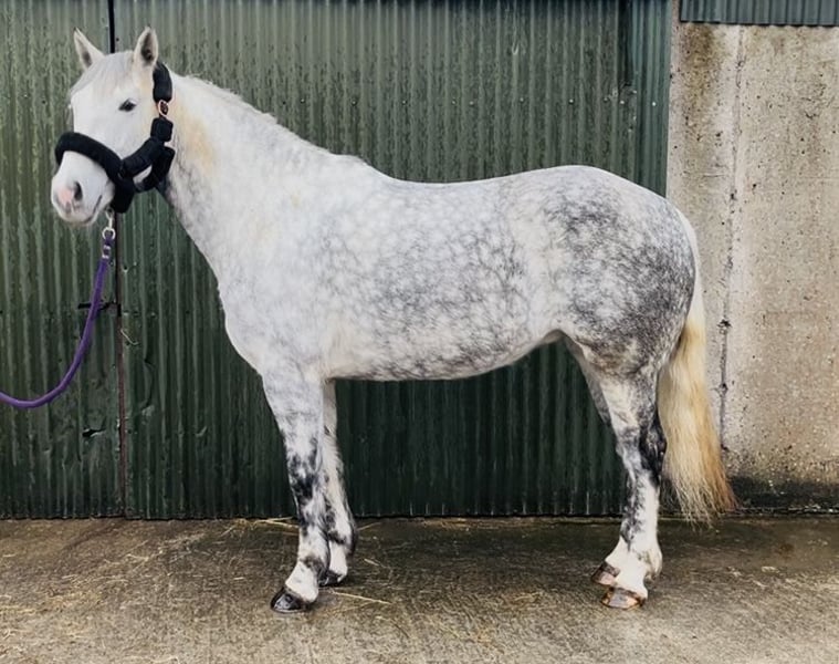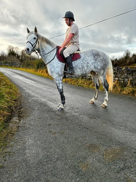 Grace is a 6yo Irish Draught type mare 165cm (16,1hh). She is a beautiful, dapple grey mare and has a lovely full bodied model. Very kind and steady temperament. She is riding quietly and doing the basics very well. Hacks out excellent, alone or in company. Good in all types of traffic and is not phased by different circumstances. She rides quietly through her paces and has schooled over small jumps , both in the school and in x country training. She is a lovely allrounder / hobby horse type and will make someone very happy. Equally sweet in all handling and a pleasure to have in the stable. Price €6,000 Located in Sligo, Ireland. Regular professional transport available if required. For further information or videos please contact Edward on 00353871412129. All enquiries welcome!