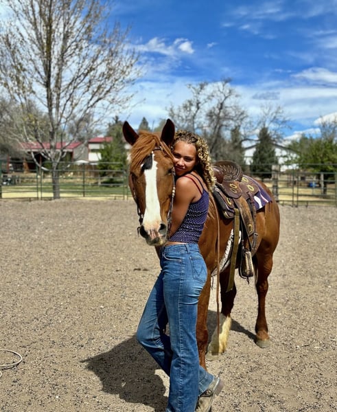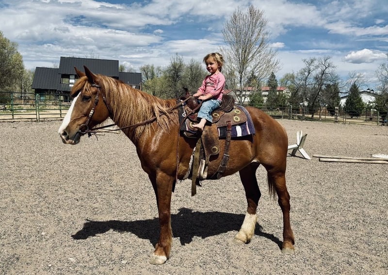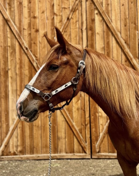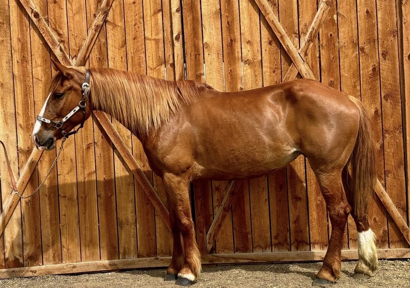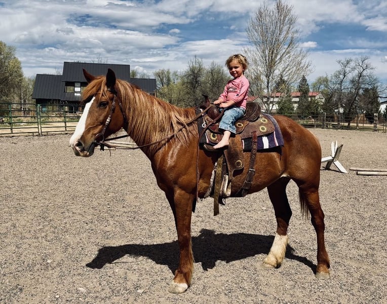 "AVAILABLE ON ONLINE HORSE AUCTION AT www DOT MagicHorseAuction DOT com BIDDING OPEN NOW thru TUESDAY | APRIL 28TH! BUY IT NOW AVAILABLE! *Final price will be determined on auction site* CONSIGNOR CONTACT INFO: Dynamite horses #970-632-3644 LOCATION: fort Collins, CO " " 🌟 Darling 🌟 Darling is a gorgeous 2018 model Mustang/Draft mare with a good build and a solid mind! We absolutely adore this mare, as do the kids at the barn. She’s the first to meet you at the gate, loves treats and being brushed, and is amazing for the vet and farrier. Darling loads well, has great ground manners, and is easy to be around. Darling is extremely versatile and has been ridden English, Western, bareback, and even bridleless! She has an amazing collection and frame, has been ridden English for the last 60 days, loves to jump, and is learning how to move laterally and hold her body. She’s great over cavalettis and cross rails and has even been taken over a cross-country course! In the Western saddle, Darling has a slow jog and lope and is working on her spins, side pass, and neck rein. Darling has carried flags, walked over tarps, dragged tarps, played with balls, and been ridden next to tractors, lawn mowers, vehicles, and other loud automobiles. By far, Darling’s favorite is the trail! She will go out alone or in a group, lead the pack or be in the back, cross bridges, go under tunnels, right next to cars, through water—you name it, she’s there for it! Darling is as willing and as smart as they come and picks up on whatever you teach her almost instantly. We are so excited to see this mare’s future and for her to find her forever family. Check out her video and come meet her in person!"
