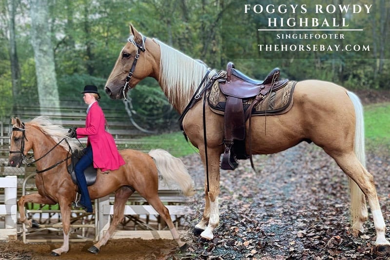 Foggy’s Rowdy Highball est un hongre de racking exceptionnel et magnifique, offrant la combinaison parfaite entre vitesse en compétition et sensibilité pour la randonnée. Ce hongre a débuté sa carrière en compétition dans la division Speed du pays cette année, ayant déjà atteint une vitesse phénoménale de 35 km/h (22 MPH). Il est par Rolling Rocks Foggy, un magnifique buckskin à un seul pied, qui détient la Triple Inscription (Racking Horse Breeders’ Association, United Racking Horse Association et Single-footer Horse Owners and Breeders Association – SHOBA). Foggys Rowdy Highball a été soigneusement débuté et entraîné par Jacob Parks Horsemanship, assurant ainsi une base solide et fiable. Il adore absolument les longues randonnées, naviguant avec confiance sur les terrains variés et exigeants des montagnes du Nord de la Géorgie. Il se brosse, se transporte et se laisse ferrer facilement, ce qui en fait un compagnon de voyage facile à gérer. Que vous cherchiez un cheval doux et fiable pour la compétition ou un cheval de trail rapide et spectaculaire pour attirer tous les regards, Foggy’s Rowdy Highball est votre prochain champion.
