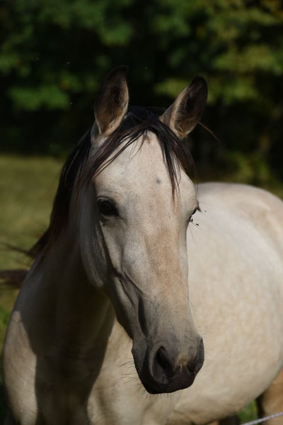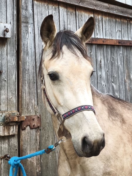 Small but very resilient Speed Racking Horse mare seeking her dream home. She is 5 years old, stands approximately 14.5 hands, and has four very smooth, clearly distinguishable gaits. She offers the tölt more easily when her energy level is higher, allowing her to increase to a canter tempo if desired. She has a lot of go, making her more suitable for experienced riders; however, she is also capable of carrying children (from age 6, who are even allowed to wave jackets around) comfortably. Initially, she was afraid of vehicles, but now cars are no longer a problem. She tolerates a bus at a distance of 10 meters quite well, though further work is needed here. Otherwise, she spends a lot of time in the field and is quite unshakable. She is familiar with groundwork, lunging, free work, as well as side passes from the ground and from above. Please feel free to contact me if you're interested.