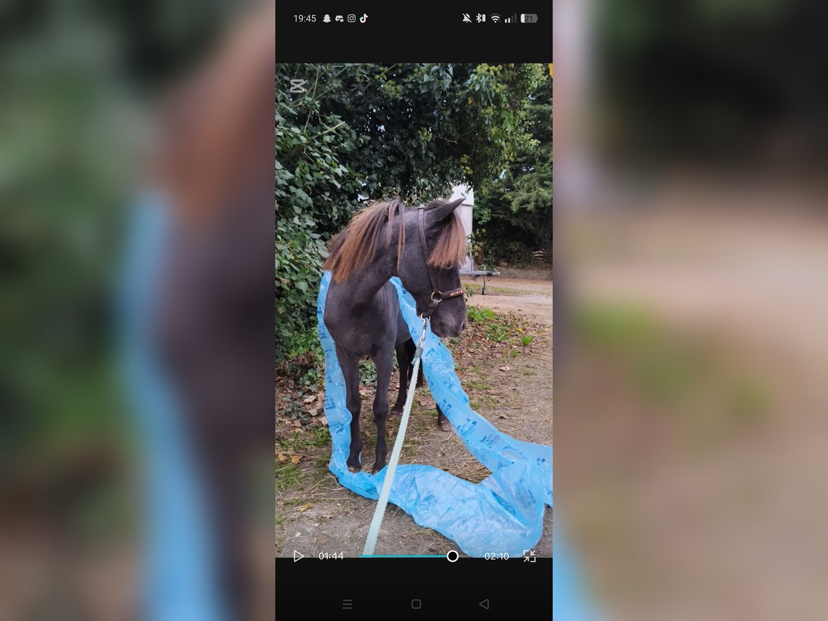 Bonjour, Voici Bonny. Bonny est un poney miniature américain, un étalon avec un registre NAS, né le 25-06-2024, mesurant 85 cm et il grandit encore. Il est bien proportionné, haut et droit sur ses jambes avec un joli long cou élancé et bien sûr une belle crinière et une queue fournis. Il a une jolie couleur particulière (noir pie) et des petits sabots rayés. Il se rend chez le maréchal-ferrant sans problème, même s'il trouve cela parfois un peu difficile, mais nous travaillons là-dessus. Il est encore vert mais très gentil, il marche toujours bien en main, même à la longe, il lève bien ses sabots, il monte facilement dans le van et peut rester attaché en toute sécurité sans surveillance pendant un certain temps. Le trafic l'effraie encore un peu, mais nous travaillons aussi là-dessus en le promenant le long de la route. En ce qui concerne son caractère, il est très affectueux et curieux, et s'il trouve quelque chose d'effrayant, il vient vers vous pour demander de l'aide. Bonny est un poney qui doit d'abord s'habituer à vous, mais ensuite il fera tout pour vous (son passé est connu de notre part). J'aimerais que Bonny rejoigne quelqu'un qui aime vraiment travailler avec des miniatures et qui, plus tard, pourrait vouloir accomplir quelque chose avec lui. Il est bien socialisé, il vit dans un petit troupeau de 6 miniatures et il est habitué aux chiens, chats, vaches et poules. (Bonny n'est pas un poney pour enfants, un poney monté, un compagnon de pâture ou un animal de compagnie.) Pour plus d'informations, n'hésitez pas à m'envoyer un message. Le prix est négociable pour la bonne maison. Il partira uniquement pour une maison 5 étoiles. Cordialement, Elise van der Vegt