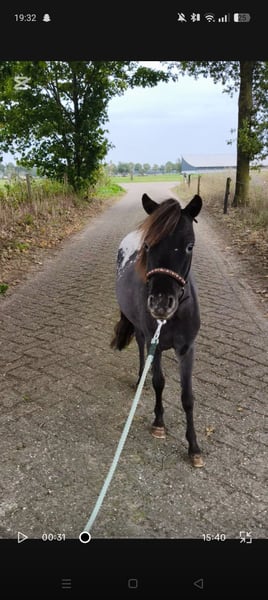 Hoiii Dit is Bonny Bonny is een amirikaans mininpaardje Hengst Met NAS stamboek van 25-06-2024 85cm en groeit nog Hij is mooi slank gebouwd hoog en recht op de beenen met een mooie lange slanke nek en natuurlijk ook een dikke bos maanen en staart Hij is een leuk bizonder kleurtje (zwart schabrakbont) en gestreepte hoefjes Hij gaat bij ons netjes mee naar de hoefsmid dit vindt die soms nog lastig maar wordt aan gewerkt Hij is nog groen maar wel heel braaf loopt altijd netjes mee ook aan de Longe tilt zijn hoefjes netjes op kan pasjes achteruit loopt makkelijk de trailer op kan langere tijd zonder toezicht veilig vast staan verkeer vindt die nog wel spannend maar daar werken we ook aan met lekker wandelen langs de weg. Kwa karakter is die heel lief en nieuwschierig en als die iets eng vindt komt die ook naar je toe voor hulp Bonny is wel een paardje die eerst een beetje aan je moet wennen maar daarna doet die ales voor je (zijn achtergrond is bekend bij ons) ik zie Bonny graag naar iemand gaan die het egt leuk vindt om met minies te werken en later ook misschien wat met hem wil gaan bereiken Hij is goed gesocialiseerd hij staat in een kleine kudde van 6 minies hij is honden katten koeien kippen gewend (Bonny is geen kinder pony, rij pony, weidemaatje of huisdier) Voor meer info stuur gerust een berichtje De prijs is bespreekbaar bij het juiste huisje Gaat aleen weg naar een 5⭐ huisje Mvg Elise van der vegt