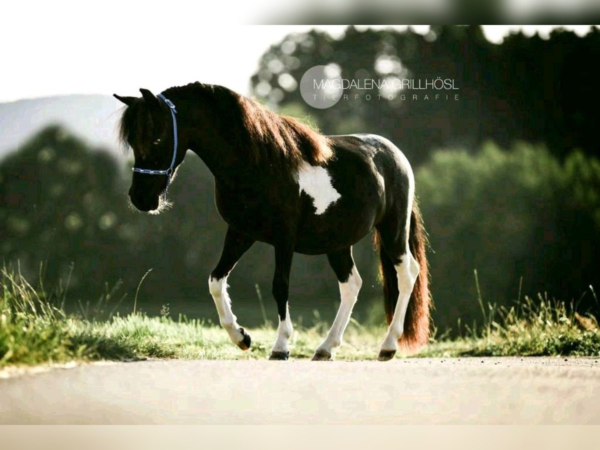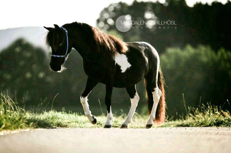 Our little star is a very sweet, active, correctly built AMHA mare born here on our farm. Height: 84 cm As a foal, she was awarded a 9.0 by the ZfdP and was later registered as a Verband Premium mare in the studbook. She has had two foals so far, both of which received premiums. Her latest foal, a champagne-colored sabino mare born in 2024, was awarded an 8.5 as a foal and may also be for sale. Pedigree can be seen in the last picture. A true gem for any breeder! Our little star grew up with children in an open stable, is healthy, regularly seen by a hoof orthopedist every six weeks, and is vaccinated and dewormed on a regular schedule. Unfortunately, my children have outgrown her, and I have given up breeding for personal reasons, which is why she has been somewhat neglected. She is kept in a small herd with end-sized ponies. Sternchen is well-behaved in handling, does not bite or kick. The photos show Sternchen from foal to adult; currently, she is wearing her thick winter fleece. :-) Further information available upon request.