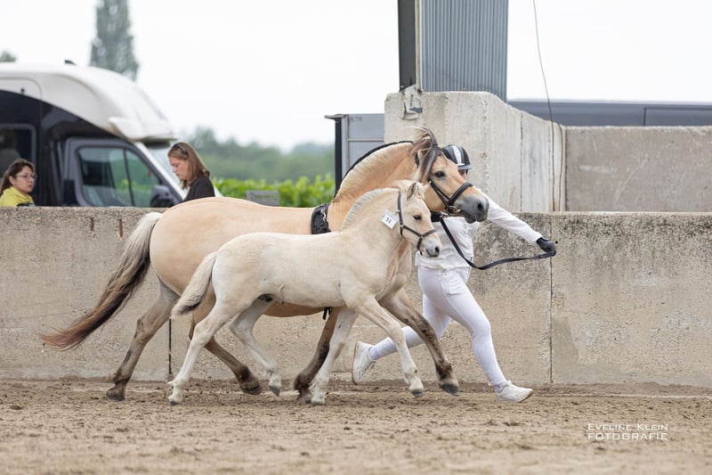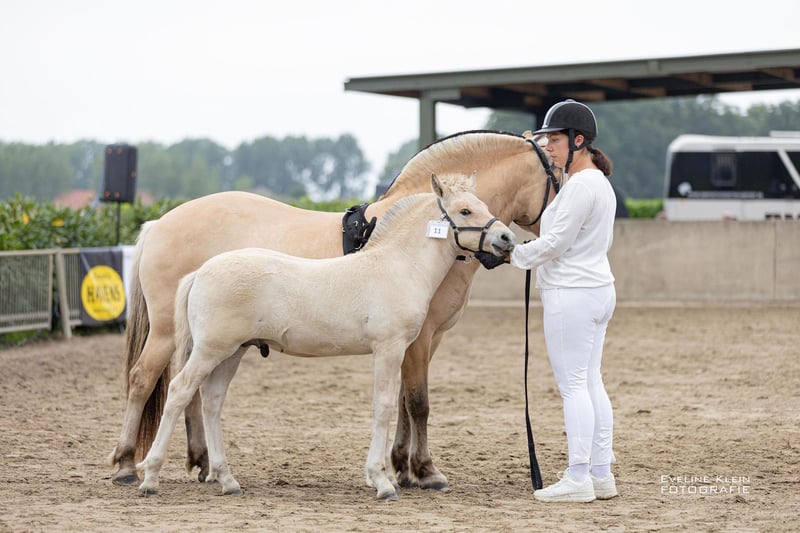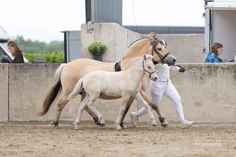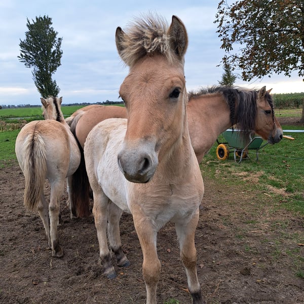 Beautiful colt foal born on June 15, 2025. His father is Lasko 'd Ober and his mother is Novalinda. At the inspection, he achieved a nice A premium. He is microchipped and registered in the Dutch Fjord Horse Studbook. Always trimmed on time, vaccinated, and dewormed. He is familiar with the trailer, stands well, and receives foal feed daily. He is growing up together with a filly. For pedigree; see document! He can move to a new home starting mid-November!