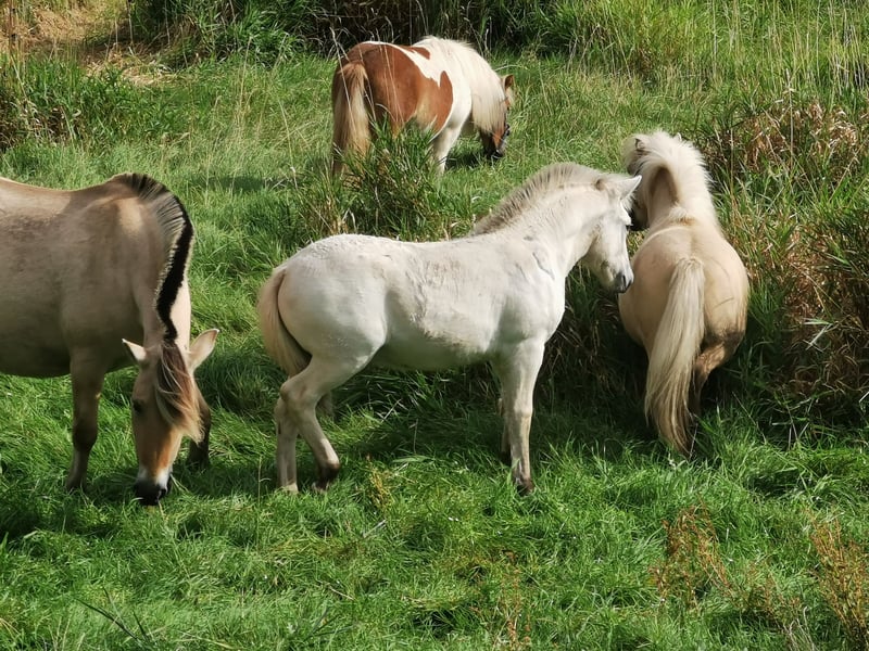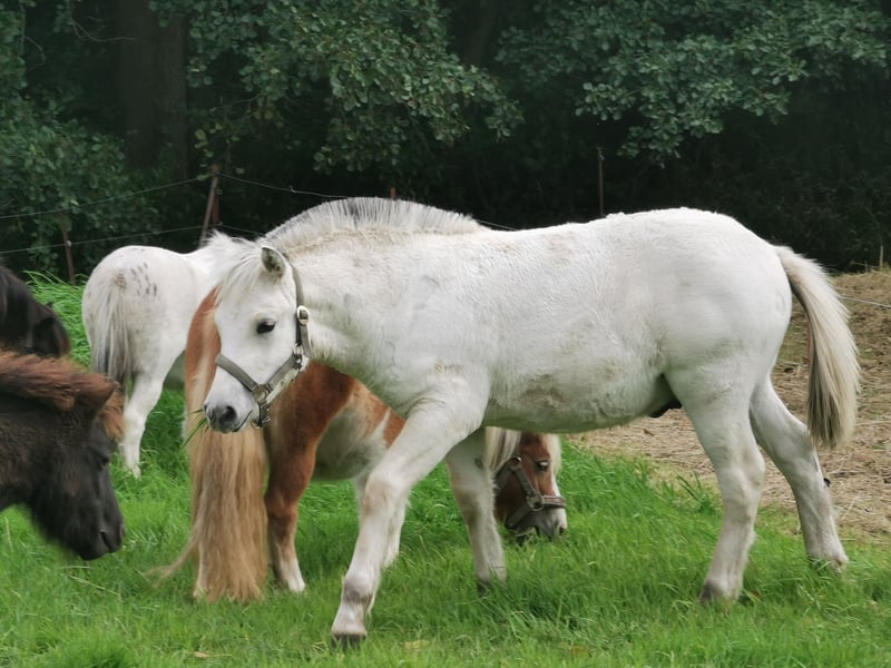Te koop is ons Fjordpaard hengstveulen van 25-05-2025, "Janikos Sammy". Hij is niet alleen qua kleur een blikvanger, maar ook zeer mensgericht en houdt van knuffelmomenten. Sammy is een witvalk (bruin-isabelvalk) en zou mogelijk ook een rooddrager kunnen zijn, dit zal middels een gentest worden vastgesteld. Hij zou ideaal zijn als rijpaard, aangezien hij zeer waarschijnlijk een eindformaat van ongeveer 153 cm zal bereiken, maar we zouden hem vanwege zijn geweldige afstamming ook graag in de fokkerij terugzien. Bij afgifte ontvangt hij volledige papieren van de paardenfokvereniging MV, is gechipt, kent het vervoer met de trailer, hoefsmid om de 6-8 weken, en nog veel meer. Onze pony's kennen de stal, maar groeien voornamelijk op in weide- of openstalhuisvesting met andere paarden en pony's. Zijn volle broer kon in 2022 op het Eliteveulenkampioenschap MV volledig overtuigen en ontving met een droom eindcijfer van 9.1 de winnaarstrui bij de Fjordpaarden. Hij leeft sinds het spenen in Zwitserland en moet een wedstrijdpaard worden. (Afbeelding 9) Nu over zijn ouders, zijn vader is niemand minder dan de meervoudige Bundesprämien, Elite en prestaties hengst Solfin Skovå, die op wedstrijden tot klasse L* actief is. Hij heeft zijn hengstprestatietest afgelegd met een resultaat van 83,20, was in 2017 Bundessieger in Berlijn, en in 2022 + 2025 Bundesreservesieger in Bad Segeberg en Berlijn,... dit zijn slechts enkele van zijn successen. Zijn moeder is de Bundesprämien, Staatsprämien en prestatiestute Chegal Charei, die in 2018 op de MeLa de winnaarstute van de Fjordpaarden werd en de zilveren prijs voor dierenfokkerij ontving, in 2024 ontving ze de 1b Bundesprämie in Alsfeld. Als deze jonge man uw interesse heeft gewekt, staat een persoonlijke ontmoeting niets in de weg. Janikos Sammy *25-05-2025 Witvalk EM ca. 153 cm V: B.Pr/ EH/LH Solfin Skovå (Afbeelding 7) Witvalk 153 cm VV: FinFin MV: Granit Halsnaes M: B.Pr/St.Pr/ LS Chegal Charei (Afbeelding 8) Lichtbruinvalk 152 cm V: Cadeau Halsnaes MV: Højgaards Bacardi