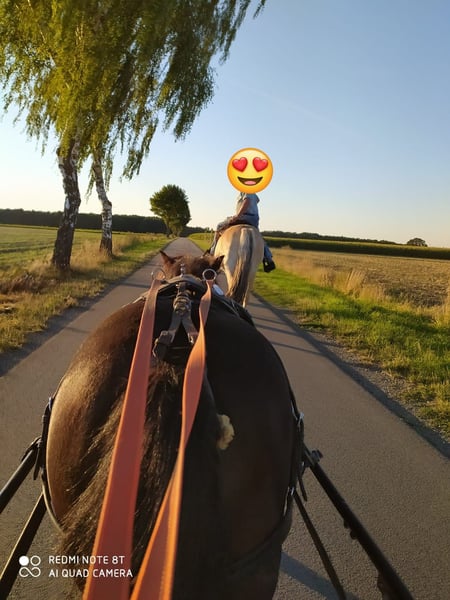 With a heavy heart, we are selling our beloved Marty. Marty has been with us for nearly a year. He was born in the Netherlands, where he was raised in a large, natural herd environment as part of landscape management. Afterwards, he came to us. He is kept in an open stable with a paddock at the house, and in summer, he grazes on a wooded pasture in a herd. He is also familiar with box stall housing (from very cold winter periods, his training, and holidays). At just 5 years old, Marty was gently backed under professional supervision by Ralf Seedorf – Roofman Ranch, completing a half-year training. Most of our time with him involved trail riding—through forests, heaths, and even ice cream stops... My daughter has also participated in some rodeos just for fun. We’ve taken him camping multiple times and on holiday. Marty is a dream horse. He has always been cheerful, friendly, and gentle with the farrier and when loading. He is safe around fences (even on the move in paddocks with minimal electric fencing), and has participated in costume riding, various rodeo events, mounted games, and other fun activities, with or without saddle. His calm nature has given me confidence, helped my husband learn to ride as a beginner, and brought my daughter much joy through his willingness to work. For the past three years, he was ridden only sporadically due to my daughter’s studies, which is why we have now decided to sell him along with the other horses, as we are no longer keeping horses. Throughout the years, he has rarely been ill. We had some issues with coughing due to poor hay quality, diarrhea from poor silage, a suspicion of pollen allergy for a year, and once a hoof abscess after a gravel weekend. Colic, unexplained lameness, laminitis, eczema, or other health problems have never affected Marty. He has not seen a veterinarian in the last three years. We are looking for a permanent, loving home for this heart horse. Marty is being sold with several pads, a Western saddle, a bareback pad, and a bridle. (Pre-purchase examination available on request and at the buyer’s expense. Test rides are possible – costs will be reimbursed.) The sale is due to the end of our horsekeeping. Details: Breed: Norwegian Fjord Horse Gelding Approx. 1.51 m (15.1 hh) tall Born in 2012 – 13 years old Western riding trained Mostly ridden in leisure and trail riding More photos to follow. For more information, pictures, and videos, please contact 0157-55791316.