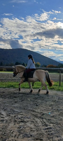 Meteor ist ein vierjähriger Fjordwallach (April 2022) mit ehrlichem Charakter und vielversprechender Zukunft. Sein Vater ist Marlon, der Muttervater Edwin – eine solide Abstammung, die sich in seinem ausgeglichenen Wesen und seiner Leistungsbereitschaft widerspiegelt. Er wurde im vergangenen Jahr schonend angeritten und zeigte sich dabei stets sehr brav, motiviert und lernwillig. Meteor arbeitet aufmerksam mit, ist fleißig und möchte gefallen. Er bringt beste Voraussetzungen für eine harmonische Weiterentwicklung mit. Durch seine Rittigkeit und seine positive Arbeitseinstellung sehen wir in ihm einen vielseitigen Allrounder. Ob Dressur, Working Equitation oder bei entsprechender Förderung auch erste Sprünge – Meteor bringt das Potenzial für unterschiedliche Wege mit und eignet sich ebenso für ambitionierte Freizeitreiter mit sportlichen Zielen. Besonders hervorzuheben ist sein absolut lieber und herzensguter Charakter. Er ist menschenbezogen, freundlich im täglichen Umgang und macht einfach Freude – ein Pferd, das man nicht nur reitet, sondern wirklich ins Herz schließt. Meteor ist derzeit ca. 1,42cm groß, steht barhuf und befindet sich in 9500 Villach in Kärnten, Österreich. Ein Prestige Dressursattel kann bei Interesse gegen Aufpreis miterworben werden. Bei ernsthaftem Interesse freuen wir uns über eine Nachricht.