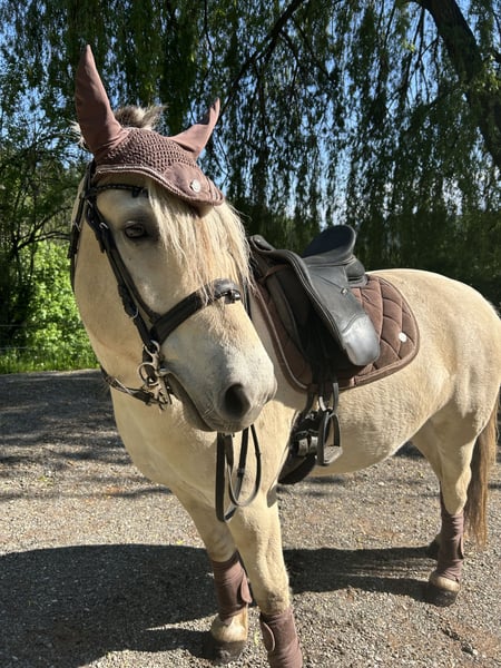 Laurin ist ein ca. 143 cm großer 5-jähriger Fjord Weißfalbe. Er ist 2020 geboren und lebt seitdem in unserer artgerechten Herde. In der Herde ist er eher dominant. Laurin ist bereits seit einem Jahr im Training. Mit Bodenarbeit haben wir aber schon früher begonnen. Daher kennt er die Grundbasis. Beim Reiten ist er brav und zeigt gute Gänge. Er ist sehr Geländesicher und liebt es sehr lange gemütliche Ausritte zu machen. Auf der Reitbahn sind wir noch nicht so weit. Er befindet sich aber weiterhin im Training und entwickelt sich jeden Tag weiter. Aufgrund seines Alters ist er nicht für Anfänger geeignet. Er ist sehr lieb, auch im Umgang mit Kinder und liebt es mit ihnen zu kuscheln. Laurin braucht einen Konsequenten aber lieben und geduldigen Besitzer, der sich viel und regelmäßig mit ihm beschäftigt. Laurin ist ein sehr Menschenbezogenes liebevolles Pferd und sucht gerne Nähe. Beim Hufschmied ist er auch sehr brav, beschlagen wurde er aber noch nie, da er gute Hufe hat. Auch beim Hänger fahren, gab es nie Probleme. Gerne kann Laurin nach Absprache besichtigt und Probegeritten werden. Auch aktuelle Videos senden wir bei ernsthaften Interesse gerne zu. Für weiteres gerne anschreiben