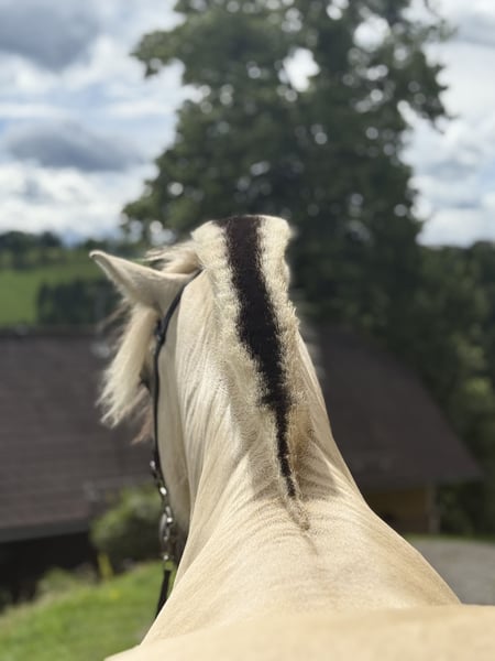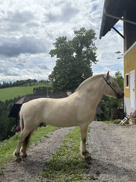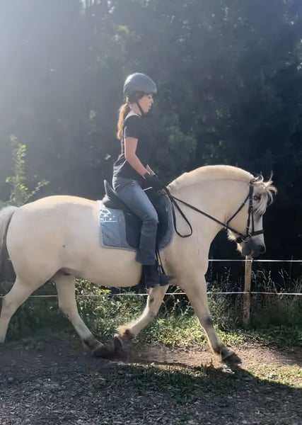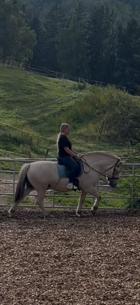Laurin ist ein ca. 143 cm großer 5-jähriger Fjord Weißfalbe. Er ist 2020 geboren und lebt seitdem in unserer artgerechten Herde. In der Herde ist er eher dominant. Laurin ist bereits seit einem Jahr im Training. Mit Bodenarbeit haben wir aber schon früher begonnen. Daher kennt er die Grundbasis. Beim Reiten ist er brav und zeigt gute Gänge. Er ist sehr Geländesicher und liebt es sehr lange gemütliche Ausritte zu machen. Auf der Reitbahn sind wir noch nicht so weit. Er befindet sich aber weiterhin im Training und entwickelt sich jeden Tag weiter. Aufgrund seines Alters ist er nicht für Anfänger geeignet. Er ist sehr lieb, auch im Umgang mit Kinder und liebt es mit ihnen zu kuscheln. Laurin braucht einen Konsequenten aber lieben und geduldigen Besitzer, der sich viel und regelmäßig mit ihm beschäftigt. Laurin ist ein sehr Menschenbezogenes liebevolles Pferd und sucht gerne Nähe. Beim Hufschmied ist er auch sehr brav, beschlagen wurde er aber noch nie, da er gute Hufe hat. Auch beim Hänger fahren, gab es nie Probleme. Gerne kann Laurin nach Absprache besichtigt und Probegeritten werden. Auch aktuelle Videos senden wir bei ernsthaften Interesse gerne zu. Für weiteres gerne anschreiben