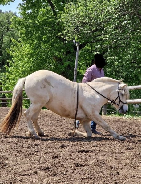Laurin is een ongeveer 143 cm grote 5-jarige Fjord met een witte vacht. Hij is geboren in 2020 en leeft sindsdien in onze diervriendelijke kudde. In de kudde is hij eerder dominant. Laurin is al een jaar in training. Met grondwerk zijn we echter eerder begonnen. Daarom kent hij de basis goed. Tijdens het rijden is hij braaf en laat hij goede gangen zien. Hij is zeer terreinveilig en houdt ervan om lange, ontspannen ritten te maken. Op de rijbaan zijn we nog niet zo ver. Hij is echter nog steeds in training en ontwikkelt zich elke dag verder. Vanwege zijn leeftijd is hij niet geschikt voor beginners. Hij is heel lief, ook in de omgang met kinderen, en houdt ervan om met hen te knuffelen. Laurin heeft een consequente, maar liefdevolle en geduldige eigenaar nodig, die veel en regelmatig met hem omgaat. Laurin is een zeer mensgericht en liefdevol paard en zoekt graag nabijheid. Bij de hoefsmid is hij ook heel braaf, maar hij is nog nooit beslagen, omdat hij goede hoeven heeft. Ook bij het vervoer met de trailer zijn er nooit problemen geweest. Laurin kan na afspraak bezichtigd en proefgereden worden. Ook sturen we graag actuele video's toe bij serieuze interesse. Voor meer informatie kunt u gerust een bericht sturen.