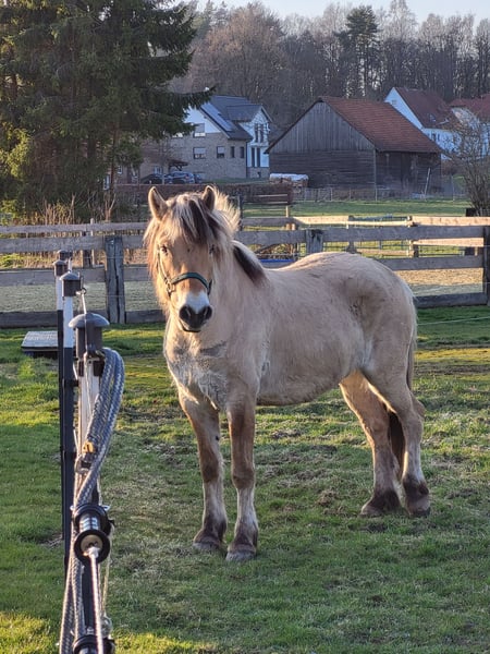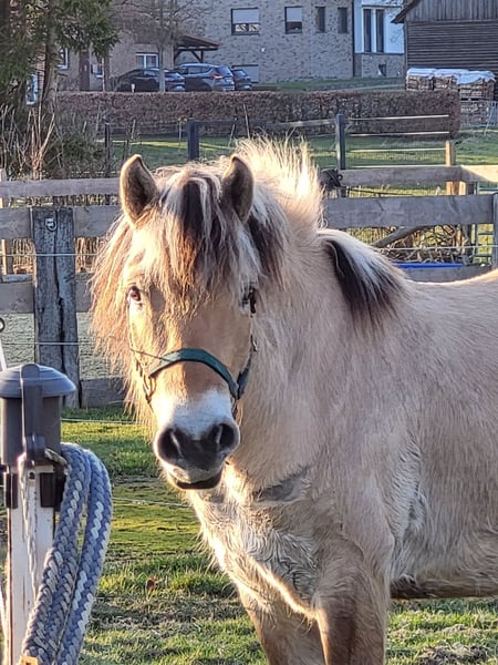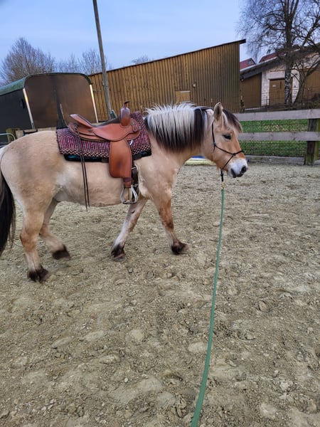 Our lovely Fjord horse is looking for a 5-star home✨️ Raudi is 6 years old, stands 14.2 hh, and has a strong, well-built physique with a long mane. He is very people-oriented, familiar with the blacksmith, lunging, saddle, and rider weight, as well as trailer loading. He is generally very gentle in handling and healthy. He comes with a pedigree and equine passport. Due to his training, he is not suitable for beginners. Location: 33165 NRW 7 carrots🥕🥕🥕