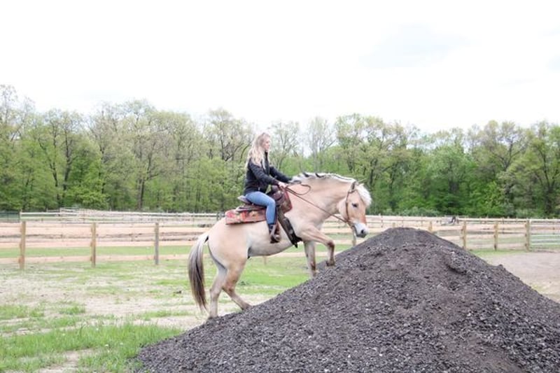 Jimmy. He is a 6-year-old Norwegian Fjord gelding Jimmy stands 14.1hh. If you know about the breed you know they are known for their quiet demeanor, versatility, and strong conformation. Jimmy is no exception to that. He is beautifully put together and is hands down the most versatile guy around. Jimmy is loaded with personality. He adores people and he knows how to lay down, sit, and say yes and no. Jimmy has been ridden on the roads, fields, and arena. He’s been used to round up cattle and rope off of. He will ride 100% off of your seat and leg cues so well that you don’t need a bridle. He will take care of any rider in any situation. We have had him out on the trails in groups of 40+ horses and he will lead or follow with the most nervous of riders, he is also great to ride out alone. He has absolutely delightful gaits this boy makes you feel like a professional every ride. He has had kids as young as 4 years old ride him independently. He is soft in the bit and responsive to all aids. Jimmy has all the natural horsemanship training you would ever expect and he soaks it all up like a sponge. He rides English, western, bareback, and even drives. He jumps full courses in stellar form with a great rhythm. He’s been to town, camping, on hunter paces and cattle drives. I think the world of this pony and could write about him all day. I would love for you to watch his video as he tells his story far better than anyone could. There’s nothing this pony can’t do!