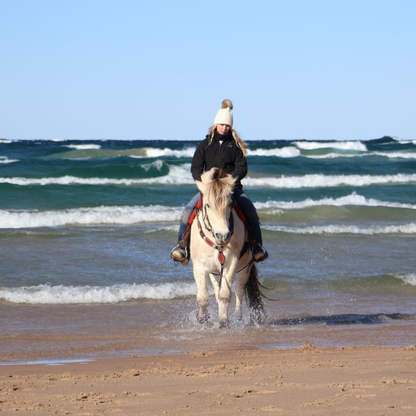 ⚜️ 𝓗𝓮𝓻𝓲𝓽𝓪𝓰𝓮 𝐖𝐢𝐧𝐭𝐞𝐫 𝓒𝓵𝓪𝓼𝓼𝓲𝓬⚜️ Happening now thru MONDAY | DECEMBER 29th - Available EXCLUSIVELY on HorseBid's website! For more details and to register visit: www.Horsebid.com CONSIGNOR CONTACT: Blackstone Stables 248-390-6831 LOCATION: Howell, MI BREED: Norwegian Fjord REGISTERED: Yes REGISTERED NAME: JE-NEA-AL COLOR: White Dun HEIGHT: 14.1 AGE: 8 GENDER: Gelding I couldn’t be more excited to introduce you to JE-NEA-AL. He is a registered Norwegian Fjord (17-7262-S) gelding. We call him Dewie around the farm. He is 8 years old. Dewie is brilliantly bred out of imported stock. He is a very rare white dun in color, who Carrie's the silver gene. If you could picture your favorite squishmellow coming to life Dewie would be it. He has a comforting nature while being exceptionally huggable. He stands 14.1hh. If you know about the breed you know they are known for their quiet demeanor, versatility and strong conformation. Dewie is no exception to that. He is beautifully put together and is hands down the most versatile guy around. Dewie is loaded with personality, and it oozes out of him! He adores people. He know liberty work such as how to lay down, and can even open a can of Mt. Dew, which happens to be his favorite drink. Dewie has been ridden on the roads, fields, the shore line of Lake Michigan and in the arena. He’s been used to round up cattle and rope off of. He will ride 100% off of your seat and leg ques. He will take care of any rider in any situation. We have had him out on the trails in the water and woods, he takes the lead or follow behind. He will ride out alone as well. He has absolutely delightful gaits. This boy makes you feel like a professional every ride. He has had kids as young as 5 years old ride him independently. He is soft in the bit and responsive to all aids. Dewie has all the natural horsemanship training you would ever expect and he soaks it all up like a sponge. He rides English, western, bareback and has had 30 days in harness. He has been to town, he’s been camping, he’s been on hunter paces and cattle drives, and even sledding! He is also no stranger to arena work and is jumping courses in the most adorable form. He has stellar ground manners and plays well with all other equines outside. I think the world of this pony and could write about him all day. I would love for you to watch his video as he tells his story far better than anyone. Please take note of the many levels of riders in this video. There’s nothing this pony can’t do! He lives in Howell, MI 48855 call or text Ellesse for more information 248-390-6831