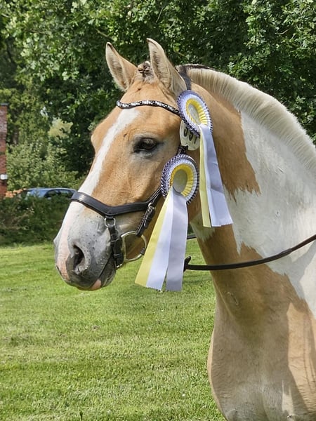 Mit schwerem Herzen suche ich für meinen hübschen 9-jährigen Norweger/Pinto Wallach ein neues, liebevolles Zuhause. Er ist vielseitig ausgebildet und wurde sowohl in der Dressur als auch im Springen gearbeitet, zudem konnte er erste Erfahrungen in der Vielseitigkeit sammeln. Auf Turnieren im E-Bereich war er bereits einige Male platziert. Im täglichen Umgang zeigt er sich brav und zuverlässig. Er ist schmiedefromm, lässt sich problemlos verladen und fährt ruhig im Anhänger. Typisch Norweger bringt er manchmal seinen eigenen Kopf mit – daher wünsche ich mir für ihn einen erfahrenen, einfühlsamen Reiter, der ihm Sicherheit und klare Führung gibt. Hat man einmal sein Vertrauen gewonnen, ist er ein treuer Partner, der gerne mitarbeitet. Er liebt abwechslungsreiche Arbeit und blüht besonders auf, wenn sein Alltag vielseitig gestaltet ist. Gesundheitlich zeigt er sich sehr robust und unkompliziert. Er war bisher immer gesund und hatte keine Probleme mit Rehe. Ich wünsche mir für ihn ein Zuhause, in dem er gefördert wird und gleichzeitig die nötige Zuwendung bekommt.