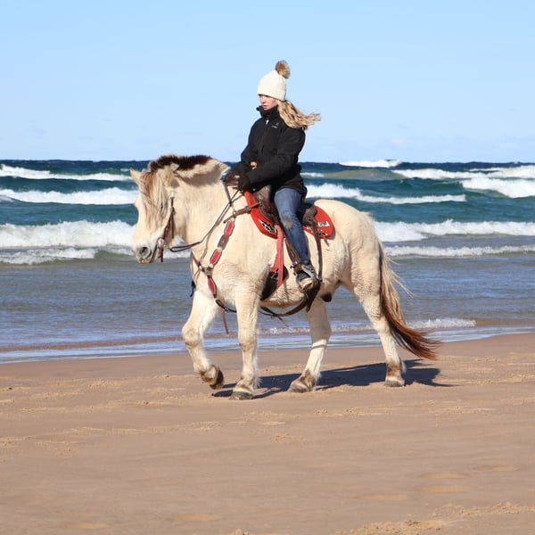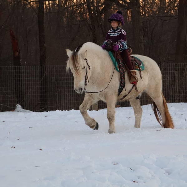 ⚜️ 𝓗𝓮𝓻𝓲𝓽𝓪𝓰𝓮 𝐖𝐢𝐧𝐭𝐞𝐫 𝓒𝓵𝓪𝓼𝓼𝓲𝓬⚜️ Happening now thru MONDAY | DECEMBER 29th - Available EXCLUSIVELY on HorseBid's website! For more details and to register visit: www.Horsebid.com CONSIGNOR CONTACT: Blackstone Stables 248-390-6831 LOCATION: Howell, MI BREED: Norwegian Fjord REGISTERED: Yes REGISTERED NAME: JE-NEA-AL COLOR: White Dun HEIGHT: 14.1 AGE: 8 GENDER: Gelding I couldn’t be more excited to introduce you to JE-NEA-AL. He is a registered Norwegian Fjord (17-7262-S) gelding. We call him Dewie around the farm. He is 8 years old. Dewie is brilliantly bred out of imported stock. He is a very rare white dun in color, who Carrie's the silver gene. If you could picture your favorite squishmellow coming to life Dewie would be it. He has a comforting nature while being exceptionally huggable. He stands 14.1hh. If you know about the breed you know they are known for their quiet demeanor, versatility and strong conformation. Dewie is no exception to that. He is beautifully put together and is hands down the most versatile guy around. Dewie is loaded with personality, and it oozes out of him! He adores people. He know liberty work such as how to lay down, and can even open a can of Mt. Dew, which happens to be his favorite drink. Dewie has been ridden on the roads, fields, the shore line of Lake Michigan and in the arena. He’s been used to round up cattle and rope off of. He will ride 100% off of your seat and leg ques. He will take care of any rider in any situation. We have had him out on the trails in the water and woods, he takes the lead or follow behind. He will ride out alone as well. He has absolutely delightful gaits. This boy makes you feel like a professional every ride. He has had kids as young as 5 years old ride him independently. He is soft in the bit and responsive to all aids. Dewie has all the natural horsemanship training you would ever expect and he soaks it all up like a sponge. He rides English, western, bareback and has had 30 days in harness. He has been to town, he’s been camping, he’s been on hunter paces and cattle drives, and even sledding! He is also no stranger to arena work and is jumping courses in the most adorable form. He has stellar ground manners and plays well with all other equines outside. I think the world of this pony and could write about him all day. I would love for you to watch his video as he tells his story far better than anyone. Please take note of the many levels of riders in this video. There’s nothing this pony can’t do! He lives in Howell, MI 48855 call or text Ellesse for more information 248-390-6831
