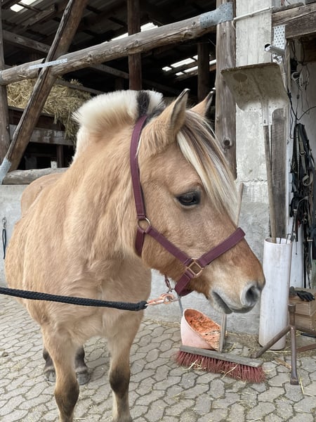 Zum Verkauf steht eine Fjordstute, geb. 2009. Ally Mc Beal wurde bei uns geboren und wurde ausschließlich als Zuchtstute eingesetzt. Sie kennt Hänger fahren, das Vorführen auf der Fohlenschau, ist aber nie geritten worden. Ally war nie krank, ist topfit, hat durchaus Energie und sucht nun nach Beendigung der Zuchtkarriere eine neue Aufgabe. Sie wird NICHT zum weiter züchten verkauft! Bei uns würde sie nur noch "rumstehen" und das wäre bei einem gesunden Pferd sehr schade. Auf Wunsch kann Ally gegen Aufpreis bei uns angeritten werden.