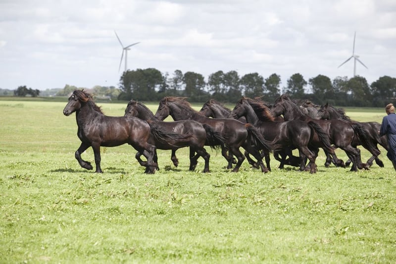 Very beautiful, special bay dun-colored Friesian x Fjord filly born at the end of April 2025 from parents with very good bloodlines (including Norbert 444, Beart 411, and Jasper 366). From the most special stud farm ‘Vrije Paarden’ in Friesland! Here, the horses grow up in pure nature in herd conditions on large, expansive pastures. Our stallion is with his herd all year round. This means that the foals are raised by their mother, aunts, and their father, always with many other foals. This ensures that you will always find a super social and stable horse that has grown up in a herd with us. This sweet filly is looking for a nice new home. She has a beautiful proud posture and lovely gaits. The mother is a sweet Fjord standing 1.51m tall, and the father is a stunning Friesian stallion standing 1.67m. The expected final height of the foal is 1.56-1.60m. She can be weaned at the end of October and knows the most important thing: the herd ABC. We are with our horses every day but do not train them, so all our horses are still completely green. The big advantage is that the horses know people, are well-socialized in the herd, have not had bad experiences, and you can teach them everything as you wish! Annually, from our beautiful family stud farm in Tzummarum (Netherlands), we offer around 40 wonderfully beautiful • Friesian foals • baroque pinto foals • Friesian cross foals • quarter foals with AQHA papers • Friesian horses, baroque pinto horses, and AQHA quarters (1-13 years) Please note: Our horses are always microchipped with a passport. Our stallions have pedigree papers, but we usually breed without pedigree papers for affordable prices. Our quarters mostly come with AQHA papers. All horses are still green and untrained. A great advantage: you always have a lot of choices with us and can view multiple mares and stallions (which can be castrated here). You will surely find your dream horse with us! Our horses are characterized by a good character, relaxed, cool, strong, healthy upbringing, and affectionate. You are very welcome at our family stud farm in Tzummarum (Friesland, Netherlands). We do not always read emails, so please call or contact us via WhatsApp!