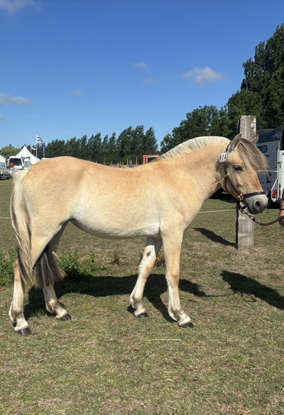 Very sweet Fjord mare born in 2024 with an excellent, thoughtful temperament. Galant311 X Lavi As a foal, she scored 39 points in a large group of filly foals at the inspection, earning first place. She was also named foal champion at the foal championship, which included colts. At the central inspection, she scored 39.5 points and was placed second. Last year, as a yearling, she again achieved a first-place ranking with 38 points. This mare would certainly not be out of place in inspections or competitions. Very interesting for breeders. She is a carrier of the red gene and possibly heterozygous agouti, which means she could produce a grey foal with the right partner. She is only available to a very good home and is not in the way, so lookers and bargain hunters need not respond.