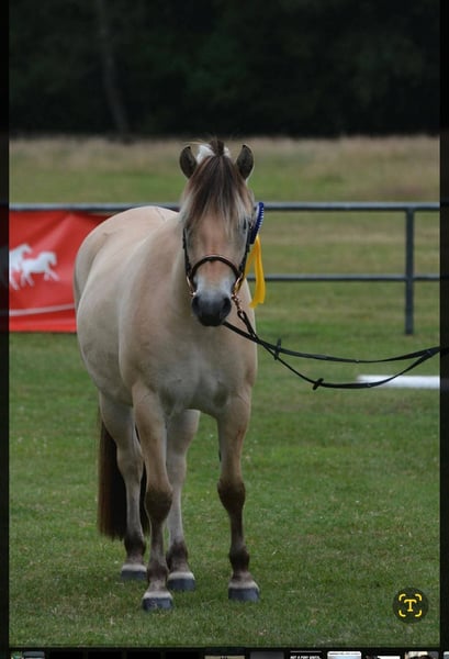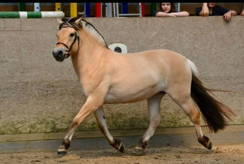 Klosterhofs Hulapalu ist bei uns auf dem Fjordgestüt Klosterhof geboren und wurde mit viel Herzblut in der Fjordherde aufgezogen. Sie erhielt eine Fohlenprämie, eine Zweijährigenprämie und die Staatsprämienanwartschaft auf der Elitestutenschau. Auch bundesweit war sie erfolgreich auf Schauen unterwegs. Derzeit wird sie schonend auf das Reitpferdeleben vorbereitet und mit viel Sorgfalt ausgebildet. Dabei zeigt sie sich stets motiviert und brav. Ihr Vater ist der original norwegisch gekörte Hengst Resen, der alle möglichen Titel wie norwegischer Qualitätshengst, Elitehengst, Leistungshengst, Bundesreservesiegerhengst uvm trägt . Ihre weißfalbe Miutter Hjelka ist auf Grund ihrer Nachzucht auch Elitestute und trägt den Titel Staatsprämienstute. Sie ist Hengstmutter und hat viele rittige und erfolgreiche Nachkommen. Hulapalu ist sehr sozial, stets enwurmt, geimpft, dem Ostheopaten, Schmied, Zahnarzt usw vorgestellt und mit sehr viel Sorgfalt ausgebildet und aufgezogen. Wir wünschen uns ein verantwortungsbewusstes Zuhause, in dem sie geliebt und gefördert wird. Artgerechte Haltung sollte Voraussetzung sein. Hulapalu ist sehr menschenbezogen und absolut liebenswert.