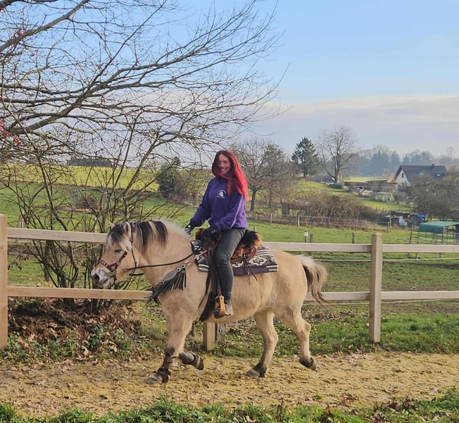 Nette Norwegerstute -Barock lieb, gelassen & vielseitig einsetzbar Alter: 8 Jahre Stockmaß: ca. 1,49 m Preis: 5900,- AKU: vorhanden ✨ Beschreibung: Diese Stute überzeugt durch ein ausgeglichenes Wesen und eine freundliche, angenehme Art. Im täglichen Umgang zeigt es sich brav, menschenbezogen und unkompliziert. Trotz des jungen Alters präsentiert sich das Pferd ruhig, gelassen und nervenstark. Unter dem Sattel arbeitet es kooperativ, lernwillig und zuverlässig. Es zeigt Freude an der Mitarbeit, ist aufmerksam bei der Sache und vermittelt ein sicheres, entspanntes Reitgefühl. Besonders im Freizeit- und Westernbereich ist es vielseitig einsetzbar. 🐎 Perfekt für: Reiterinnen und Reiter, die einen unkomplizierten, freundlichen und verlässlichen Freizeitpartner suchen. Durch das angenehme Stockmaß auch gut geeignet für Jugendliche oder kleinere Erwachsene. Ideal für Freizeit, Ausritte und Wanderritte 🩺 Unsere Pferde werden regelmäßig: – entwurmt – vom Schmied betreut – osteopathisch kontrolliert 🛍 Hofladen: Westernsättel, Trensen & Zubehör 🚛 Transport und Equipment auf Wunsch günstig organisierbar Unser Service: ✅ 3 Monate Umtauschrecht ✅ Proberitt: 35 €, jedes weitere Pferd 25 € (beim Kauf am selben Tag angerechnet) ✅ 100 € Sofort-Rabatt bei Abholung/Transport am gleichen Tag ✅ Persönliche & ehrliche Beratung 📞 Anfragen bitte ausschließlich telefonisch: 0171 – 4001968 🕗 Erreichbar täglich von 8–20 Uhr ⚠️ Keine E-Mail oder WhatsApp ⚠️ Alle Angaben ohne Gewähr
