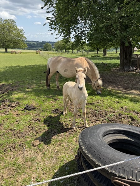 **Sales Advertisement: Fjord Horse Mare** For sale is a charming Fjord horse mare, born in 2025. With her elegant dun coat and a height of 149 cm, she is not only a real eye-catcher but also a loyal companion for leisure activities. This mare is excellently suited for trail rides, groundwork, and relaxed hours in the countryside. She has a friendly disposition and is easy to handle, making her an ideal partner for horse lovers of all experience levels. If you are looking for a loving and reliable leisure horse, this Fjord horse mare could be just the right fit for you! She is growing up in a herd environment, which contributes to her good social skills. Both parents are present and available for viewing. She could move to her new home at the end of October. She is very affectionate and trusting. For further questions, please contact me by phone or via WhatsApp. Both parents have full papers. If you are interested or need more information, feel free to get in touch.