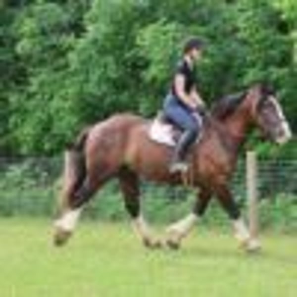 Subasta en línea Haz tus pujas en www.PlatinumEquineAuction.com Puja inicial: 3,500 dólares La subasta termina el 17 de agosto de 2025 ¿Necesitas una silla nueva? Visita White Rock Saddles en nuestro sitio web o en Facebook Presentamos a Chocolate. Este potro de 6 años, de 17 manos, mezcla de Gypsy, Shire y QH, lo tiene todo. Desde su personalidad cautivadora hasta su conformación y color impresionantes. A Chocolate no le falta nada. Es el tipo de caballo que quiere ser tu mejor amigo. Se lleva bien con todos los demás en el campo y te irá a buscar cuando camines hacia el potrero. Chocolate está extremadamente bien adiestrado. Camina, trota, galopea y para en un instante. Sus transiciones son perfectas, tanto hacia arriba como hacia abajo. Su paso de galope es como estar en una mecedora. Chocolate dirige con la silla y las piernas tan bien que ni siquiera necesita bocado. Acepta con gusto un bocado, una rienda simple o de shank, no es quisquilloso, o simplemente quítale la rienda y él se guía con las indicaciones de las piernas. Este caballo ha enseñado a muchos jinetes primerizos y todos adoran su carácter tranquilo. Cada monta le da confianza y te hace querer volver a montar. Chocolate tiene mucha experiencia en senderos, desde las montañas de Missouri hasta los campos abiertos de Michigan, lo ha visto todo. Agua, bosques profundos, caminos, vida salvaje, ningún problema. Ha sido montado en grupos de hasta 40 caballos. Se adapta a cualquier puesto en el grupo y no se altera. También ha salido solo. Además, ha sido usado para redondear y cabalgar ganado salvaje. Ha sido montado en tándem y en solitario. Tiene una gran formación en la arena y conoce todos los movimientos de doma clásica del primer nivel, ¡e incluso salta! Sobre obstáculos, parece un cazador, camina por las líneas y recoge las rodillas perfectamente. Ha completado nuestro programa de desensibilización. Chocolate es el caballo que te enseñará lo básico, en el que puedes confiar y que está lleno de personalidad. Seguro te conquistará con solo una mirada a sus grandes ojos color avellana. Chocolate vive en Howell, Michigan. Por favor, llama o envía un mensaje a Ellesse Schwartz al 248-390-6831.