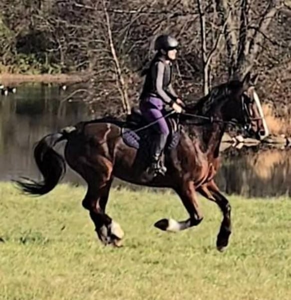 "AVAILABLE ON ONLINE HORSE AUCTION AT www DOT MagicHorseAuction DOT com BIDDING OPEN NOW thru TUESDAY | December 9TH! - BUY IT NOW AVAILABLE! *Final price will be determined on auction site* CONSIGNOR CONTACT INFO: Nicole Ingrassia 571-289-2947 LOCATION: Jeffersonton, VA "Looking for the perfect horse and didn't want to compromise? Well, now you don't have to, because Silas is the total package! *Brains* *Beauty* *Athleticism* This sporty gelding is a 7 year old simply stunning, chromed out, mahogany bay American Warmblood gelding (Clydesdale cross) standing at a lanky 16.1h with a correct, uphill build, sporty athleticism and a very quiet, agreeable, amateur friendly, laid back, sweet disposition. This sweetie has a dreamy canter, picks up his leads easily, and he has scope galore over jumps and he loves the trails. In my opinion, he is older lady safe but younger lady interesting (and yes, husband safe) and quiet enough for the whole family. While he is not a packer yet, he seems suitable for just about anyone due to his quiet and willing nature. He is shown us no spook no buck no lunge/prep and been a no nonsense kind of guy suitable for all rider levels. We have taken this gelding on trail rides, cross-country schooling, and through fire/smoke and other challenges, and he has demonstrated a wonderful disposition combined with a steady temperament and oodles of athleticism. In a simple word, Silas is so much fun! He is a chill dude and would be just as happy to live a slower-paced life too, but if you want to gallop over fences, hill top, foxhunt, or jump a course of fences, he will also be happy to comply. He has a dreamy, smooth athletic canter that is fluid and smooth like a gazelle (only a lot slower), and he rides in a simple snaffle. We have ridden him in a halter or a bridle, english or western, and he has been the same off-property as he is at home. He is soft in his mouth and not strong at all, and he has great transitions. He loves the trails and he is content to meander through the woods and cross creeks. Silas does not need to be lunged or ridden every day to maintain his composure. I can picture him as being the ultimate foxhunting horse, hilltopper, or even guest and husband/family horse as needed or wanted or he a lovely all-arounder for an amateur rider. Silas is also very smooth to ride and comfortable. His WTC are lovely and easy to sit, and he picks up the correct leads very easily. Silas is an incredible horse with an incredible disposition and amount of try. If you've been looking for that one in a million unicorn, in my humble opinion he makes the cut. Silas has no blemishes, and he is sound and healthy and not on maintenance. Silas had a recent vet check prior to the auction with clean results. He is up-to-date on dental, vaccines, coggins, deworming, and just had a fresh set of shoes put on. Silas has no vices at all and he is easy to have around, he can live in or out and gets along well with other horses. He has great ground manners and is wonderful to work around and is very polite, easy to catch, friendly, and a sweet mild-mannered gelding. He does not have reg. papers currently, but his age of 7 coming 8 has been verified by both vet & dentist, and he is eligible to be registered with American Warmblood Society if his new owner wishes. Silas comes with 1 week of free board, and he can be boarded at our farm after that time as well. We can board for the holidays. We can help with arranging shipping nationwide or to Canada. If you have any questions or interest in Silas, we encourage you to reach out: 57l2892947, thank you!