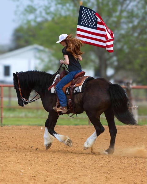 ONLINE AUCTION Place your bids at www.PlatinumEquineAuction.com Starting Bid $3500 Auction ends April 13th, 2025 Need a new saddle? Check out White Rock Saddles on our website or Facebook! Leroy is what every draft cross lovers dreams are made of. This 8yr old, 16hh, 1350lbs, Quarter Horse/Draftcross Gelding that has the puppy dog demeanor of a draft that everyone adores along with the rock solid conformation but has the ability and versatility to perform like a quarter horse half his size if needed and has the resume to prove it. Dad can use him to do ranch work, mom can ride him out on the trails or take him over fences, and the kids can play around him safely and dote on him to their hearts content. Leroy is truly a horse the whole family can and will enjoy. Leroy was bred and raised in Canada and then used to do ranch work in Canada, Montana, and here in Texas. He’s has a great work ethic and there’s no job too big for him. From doctoring in the pasture to dragging calves to the branding fire, Leroy has done it all and is ready for any job you need him to do. With his ranch work history especially in the mountains, it’s no surprise that Leroy is one of the most surefooted horses to grace our program. From mountainous terrain to the plains, he will safely get you to do your destination every time. Leroy crosses creeks and bridges with ease, navigates through thick brush safely, is careful and strategic about his foot placement when going up and down steep terrain, has no qualms when it comes to vehicle or pedestrian traffic, and if you’re on a State Trail way you’re sure to get compliments on him from passerby’s. In the arena, Leroy shines just as bright. Whether you’re riding him under english tack or western, Leroy is a smooth and fancy ride that attracts attention. He is one handed broke, side passes both directions, picks up the correct leads, can turn around slow and correct, and is tuned in to not only your seat, legs, and hands, but your voice as well. A simple sit on your pockets with a bump of the reins and an “easy” can have him going around at a pace slower than some pleasure horses and a bump with the magic “whoah” will have him stopping on a dime. Leroy is comfortable to ride in all gaits thanks to his natural cadence accentuated by his training. He has a lovely ground covering walk, a fantastic jog that can be bumped up to a comfortable working trot, as well as a lope that makes 90% of other horses his size 100% jealous. We truly don’t believe there is anything Leroy can’t do as he’s exceeded every expectation while in our program. He will carry a flag, has been schooled successfully up to 3’6” in both show jumping and cross country with a few prelim and intermediates thrown in, goes around lovely on the flat under english tack, happily keeps a toddler safe while riding double with a parent as well stepping up to the plate to be a huge blank canvas for said toddler’s finger painting. Leroy isn’t just a ranch horse, he’s a horse the whole family can enjoy doing so many different things with thanks to his mind and versatility. When it comes to Leroy’s daily care and handling, he is an absolute gentleman. Leroy has been easy to catch each time we walk out to get him and can typically be heard before seen with his greeting nicker. From grooming to tacking up, Leroy will remain like a patient statue (bonus points, you don’t need any specialty draft tack for him). He’ll let you take your time mounting and unmounting, and you can also safely use a mounting block if needed. Leroy is good to bathe and clip as well. The first time your farrier lays eyes on Leroy he might not be your biggest fan, but after working on Leroy, whether it’s just a trim or a full set, your farrier is sure to like him too. If you’re often trailering to different places, you can rest easy knowing Leroy will always load into your trailer and hauls without any fuss. Leroy has had no previous health or lameness issues, requires no special care or maintenance, is UTD on all routine care, and is ready to become the horse you’ve always wanted to own. We invite you to come meet this exceptional gelding at our place in Weatherford, TX. PPEs welcomed and we can help assist setting up hauling to wherever you call home. For any questions and to talk about if Leroy is the right fit for you, feel reach to out to H Spur Performance & Versatility Horses Sarah at 817-366-6123. To see his other 20+ videos and additional pictures, please visit his page on our website www.hspurhorses.com/leroy. ONLINE AUCTION Place your bids at www.PlatinumEquineAuction.com Starting Bid $3500 Auction ends April 13th, 2025 Need a new saddle? Check out White Rock Saddles on our website or Facebook!