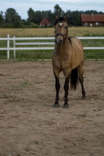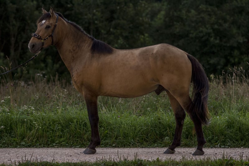 If you’re dreaming of a horse with a unique colour, lots of character, and the chance to grow and learn together, Tähistaevas might be the one for you. In October, there is a chance to get free transportation to many European countries - read more below! Tähistaevas is a young stallion with an eye-catching look and human oriented nature. In the pasture, he always comes to say hello first and loves spending time with people. In autumn 2024 he went to the Estonian Native Horse Breeders Associaton (EHKAS) young stallion show, where he showed off his lovely movement and jump. He got a young stallion licence to cover mares for 3 years. On show pictures he is 2 years old. By now he has grown up more and gained muscle and size. Juges comments: Walk: long, elastic, with good use of the back and a clear rhythm. Trot: balanced, slightly longer than average, with sufficient front leg action and clear rhythm. Canter: well balanced, spacious, long, elastic, with an even rhythm and uphill impulsion. Jump: powerful, elastic, balanced, with quick takeoff. He approaches fences attentively, the jump has an upward direction, and his leg work is quick. Why he’s special -People oriented: great for liberty work -Enthusiastic and willing to learn -Jumping capabilities: can be a nice pony for show jumping or working equitation -Convenient height - great potential for children but also strong enough build for grown-ups -Well-handled: halter trained, dewormed, vaccinated, loads easily into the trailer. -Has done lots of groundwork - lunging, transitions, bending, following a person in different positions F-orward-thinking and lively, but not too much - just the right sparkle -Not trained in riding in order to let him grow and mature. This will guarantee many healthy years to come! If a new owner prefers a gelding, this is possible to take care of before going to a new home. As he is a young stallion he needs knowledgable handling to stay polite and lovely as he is now. Tähistaevas is an Estonian native horse. This breed is renowned for its versatility and good-natured temperament. In general, they have good health and few troubles, which, in comparison, is common among many modern breeds. If you decide to buy him before the end of October, I can provide you free transportation to Finland, Sweden, Latvia, Lithuania, Poland, Denmark, Germany, Belgium or Netherlands, as I have planned a trip from Estonia to Western-Europle. Possible transportation to other locations can be discussed as well. You can find more pictures and info on my FB page: Kruusamäe talu hobused or Instagram kruusamae_talu_hobused.