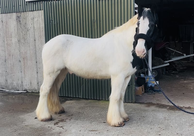 Shamrock Paddy - 11yo gelding 16hh Great weight carrier type! He is a super handsome Irish cob gelding. Shamrock has hunted previously in Ireland and has some x country experience. We have been told Shamrock was used to pull timber from a forest a few years ago. Super full sized model. Rides away super well - really steady but still pops around a small track of fences with a more ambitious rider. Very good x country and very good in traffic. Price €5,500 Located in Sligo, Ireland. Regular professional transport available if required. For further information or videos please contact Edward on 00353871412129. All enquiries welcome.