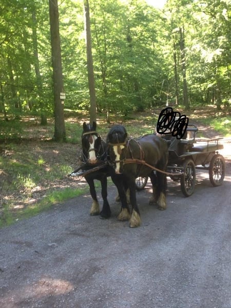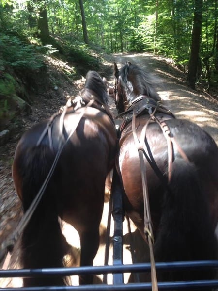 Ned and Neddy, two brothers excelling in harness work. They are also broken to ride, but some retraining will be needed. Very gentle, well-behaved, and friendly with people. To be sold together.
