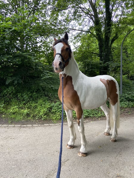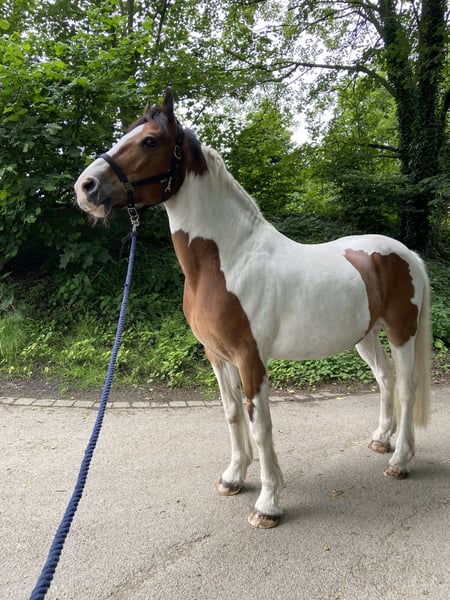 Verkaufe freundlichen Cob-Wallach, geb. 2010, mit beeindruckender Scheckung. Das Pferd verfügt über ein Stockmaß von ca. 165 cm und ist ein angenehmer Freizeitbegleiter. Der Wallach ist gut geritten und zeigt sich im täglichen Umgang sowie im Gelände stets zuverlässig und ruhig. Ideal für Reiter, die einen vielseitigen und angenehmen Partner für die Freizeit suchen. Bei Interesse stehe ich gerne für weitere Informationen und eine Besichtigung zur Verfügung.