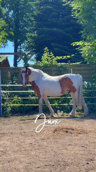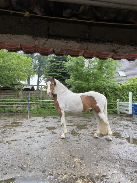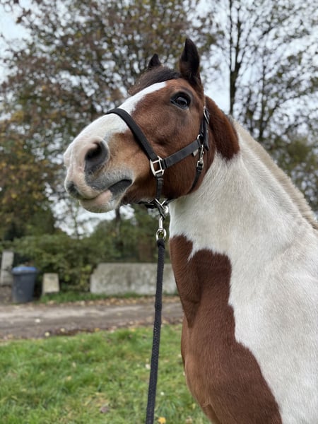 For sale: a friendly Cob gelding, born in 2010, with an impressive pinto coat. The horse measures approximately 16.1 hands and is a pleasant companion for leisure riding. The gelding is well-schooled and consistently reliable and calm both in daily handling and in the field. An ideal partner for riders seeking a versatile and easygoing horse for recreational riding. Please feel free to contact me for more information or to arrange a viewing.