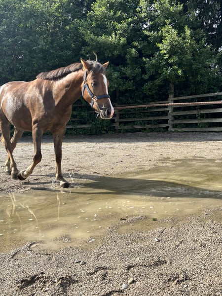 Chico ist ein bald 4-jähriger Wallach, welcher mit seinem ausgeglichenen und freundlichen Wesen überzeugt. Er ist sehr lieb im Umgang, menschenbezogen und jederzeit angenehm zu händeln. Auch in neuen Situationen zeigt er sich unerschrocken und gelassen. Aktuell steht Chico noch im Wachstum und hat zurzeit ein Stockmaß von ca. 135cm. Er wird sich zu einem vielseitigen Allrounder-Pony entwickeln und eignet sich ideal für Reiter, die ein junges Pony zum selbst ausbilden suchen. Chico kennt schon Sattel, Zaumzeug und das Reitergewicht. Durch seinen ausgeglichenen Charakter und seine Lernbereitschaft bringt Chico beste Voraussetzungen für gute weitere Ausbildung mit. Ein tolles Nachwuchspony, das mit Geduld und Förderung viel Freude bereiten wird.
